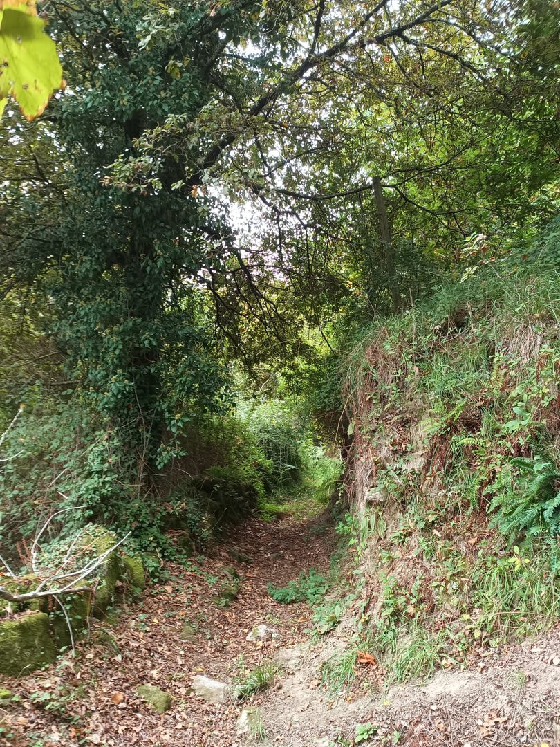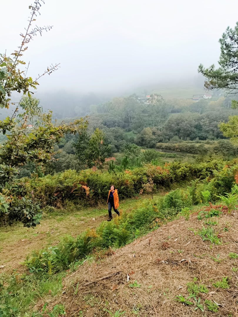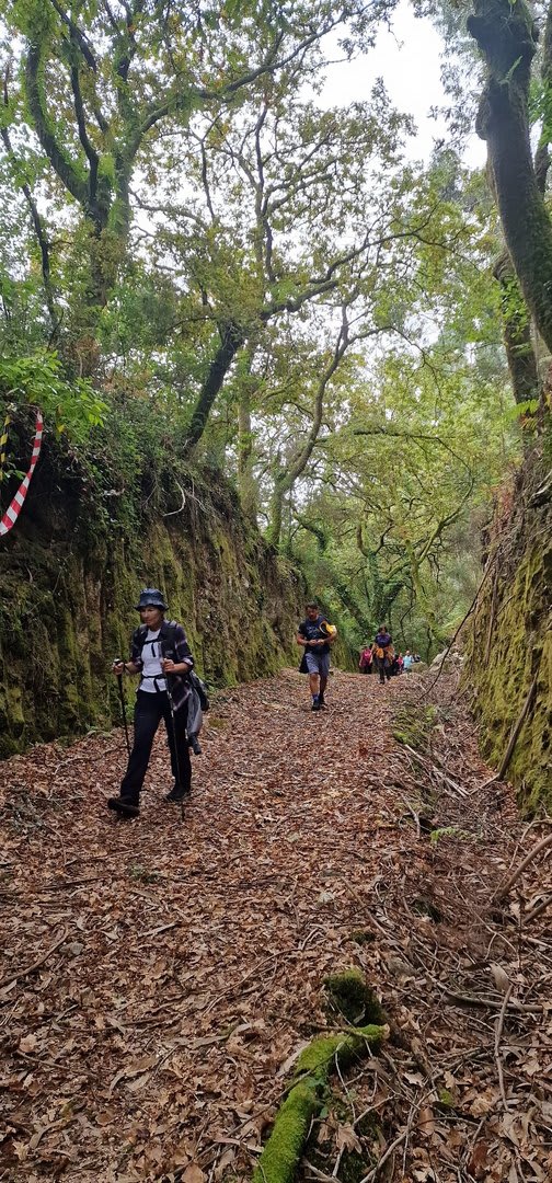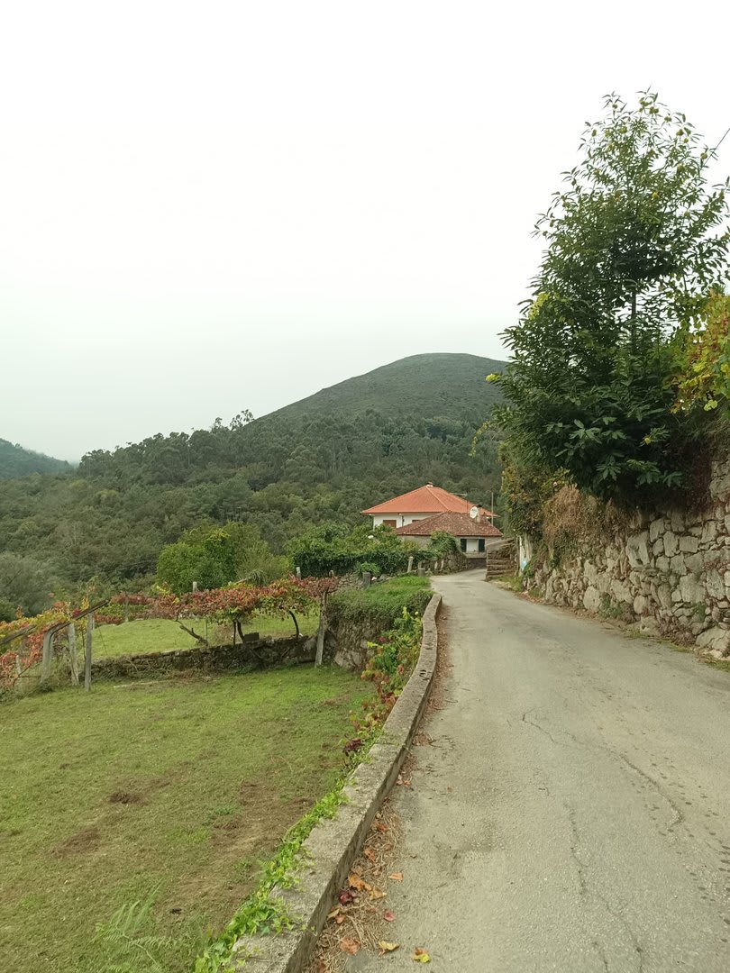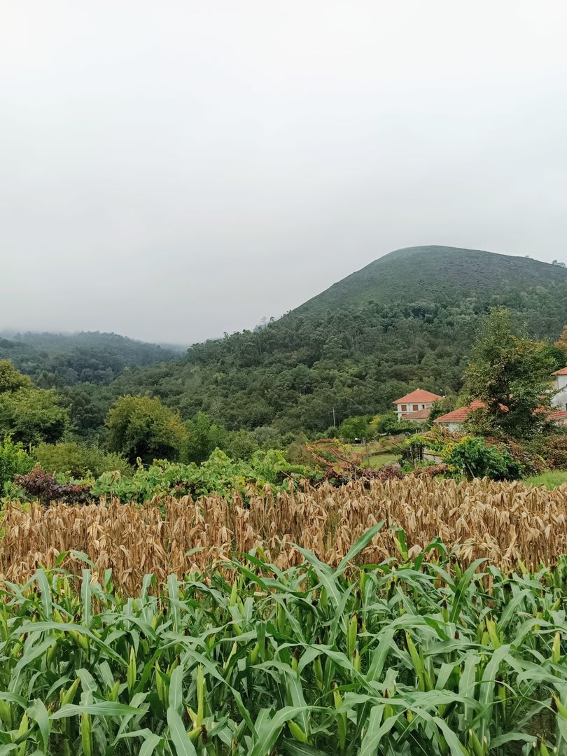 Prosseguindo, contornamos a elevação do Crasto, local de antigo povoado, e sempre por caminhos pouco utilizados cruzamos os pequenos lugares de Outeiro, Casal e Além da Parte (?). O percurso ia-nos surpreendendo, mostrando-nos o quão espetacular é o Alto Minho. Sempre embrenhados por um carvalhal, aqui e além com belos recortes de paisagem, um pouco mais acima passamos pelo lugar de Castanheira e logo depois atingimos o primeiro objetivo: a Portela do Extremo, ponto de fronteira entre os concelhos de Arcos e Monção.