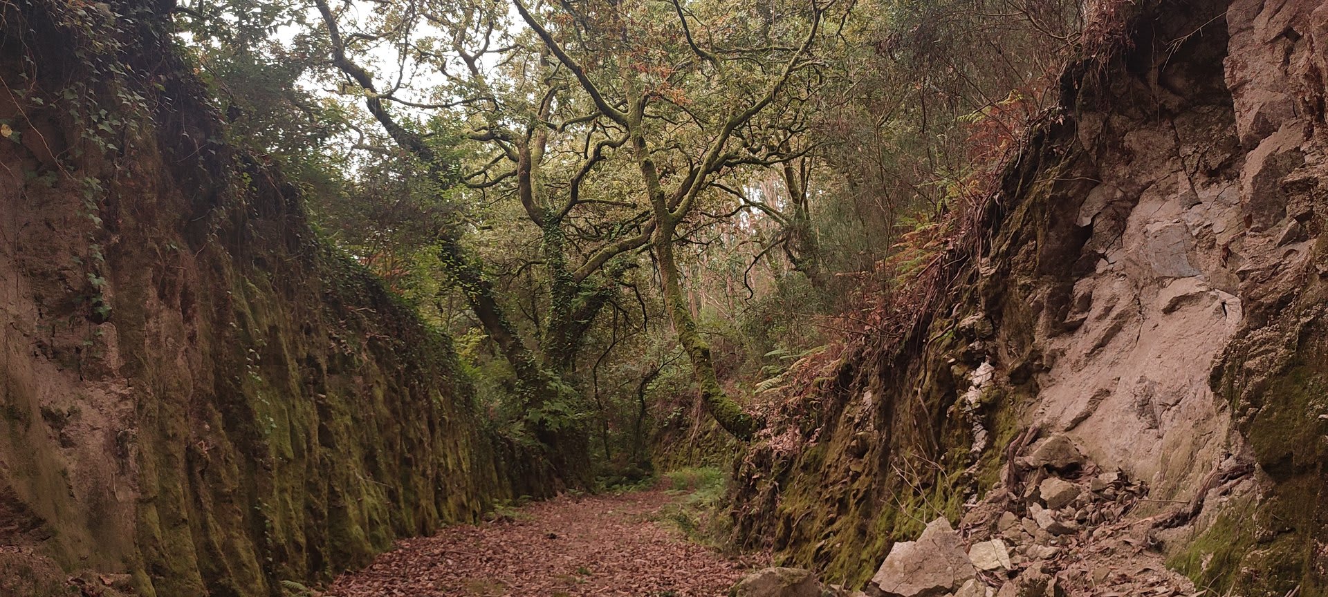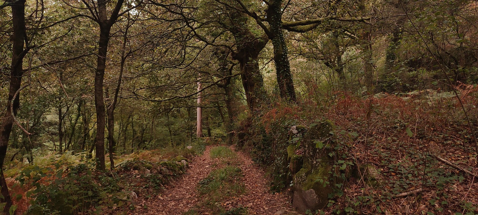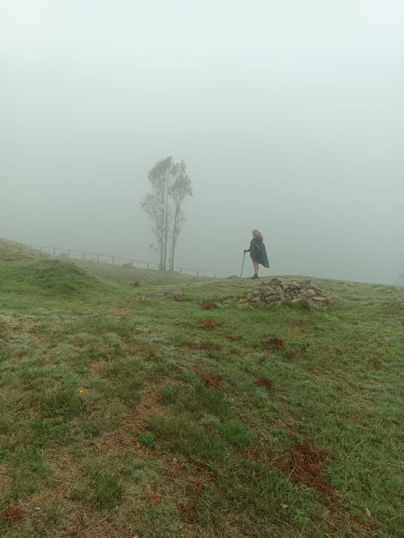 Prosseguindo, contornamos a elevação do Crasto, local de antigo povoado, e sempre por caminhos pouco utilizados cruzamos os pequenos lugares de Outeiro, Casal e Além da Parte (?). O percurso ia-nos surpreendendo, mostrando-nos o quão espetacular é o Alto Minho. Sempre embrenhados por um carvalhal, aqui e além com belos recortes de paisagem, um pouco mais acima passamos pelo lugar de Castanheira e logo depois atingimos o primeiro objetivo: a Portela do Extremo, ponto de fronteira entre os concelhos de Arcos e Monção.