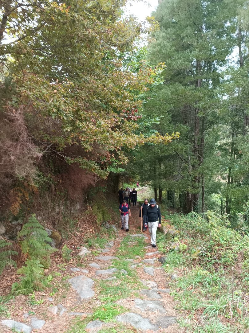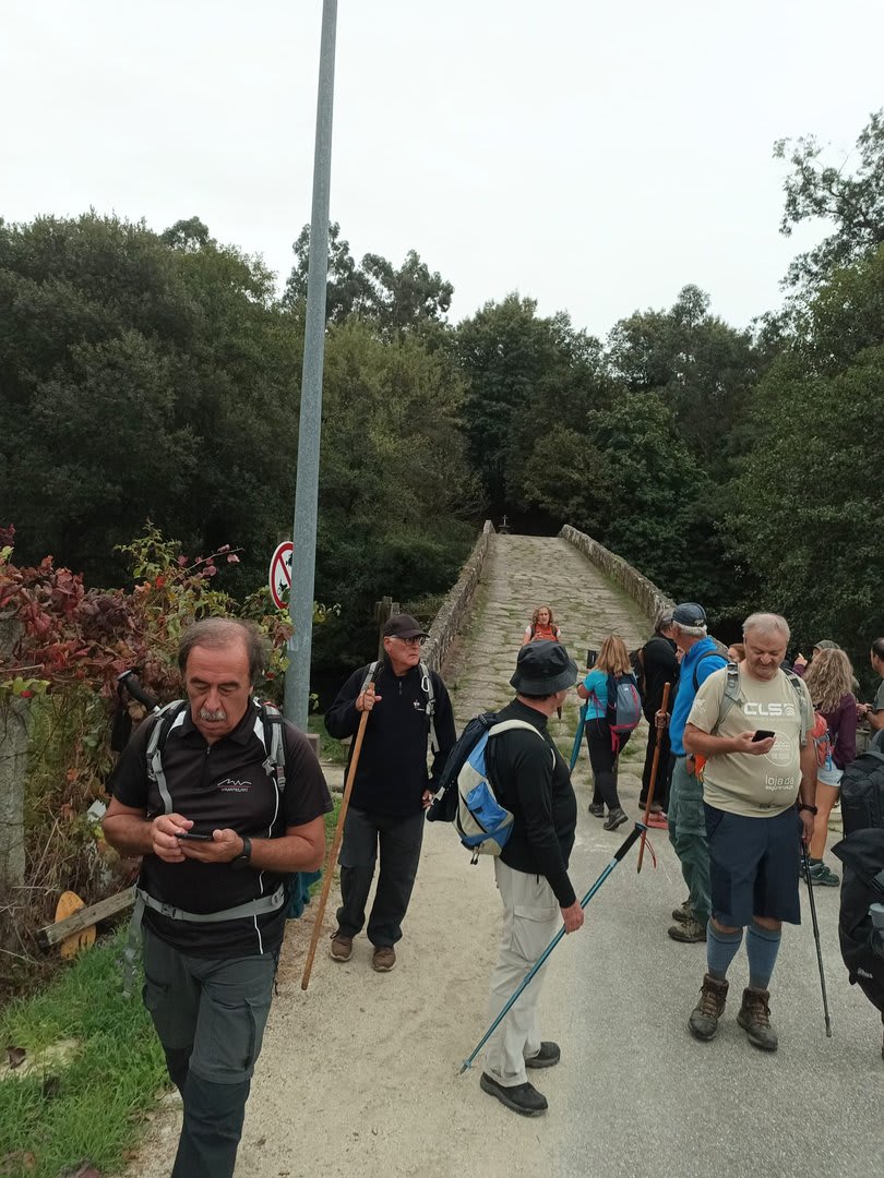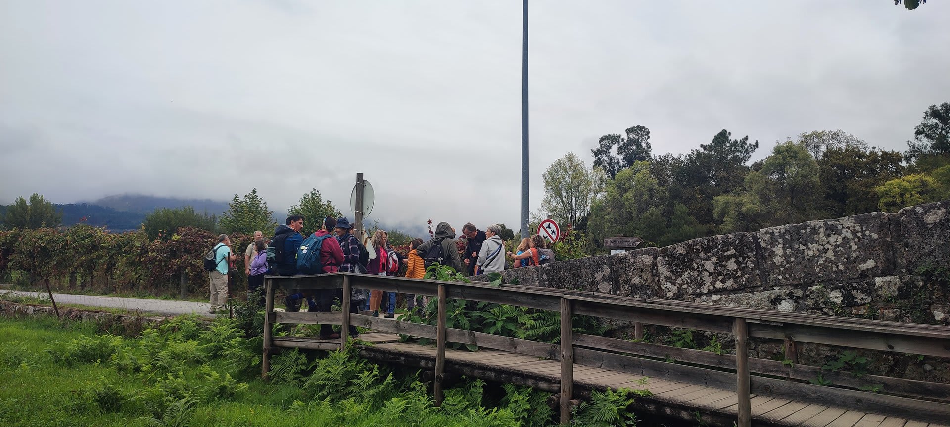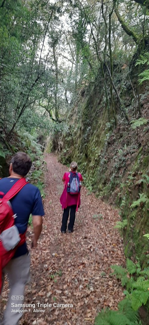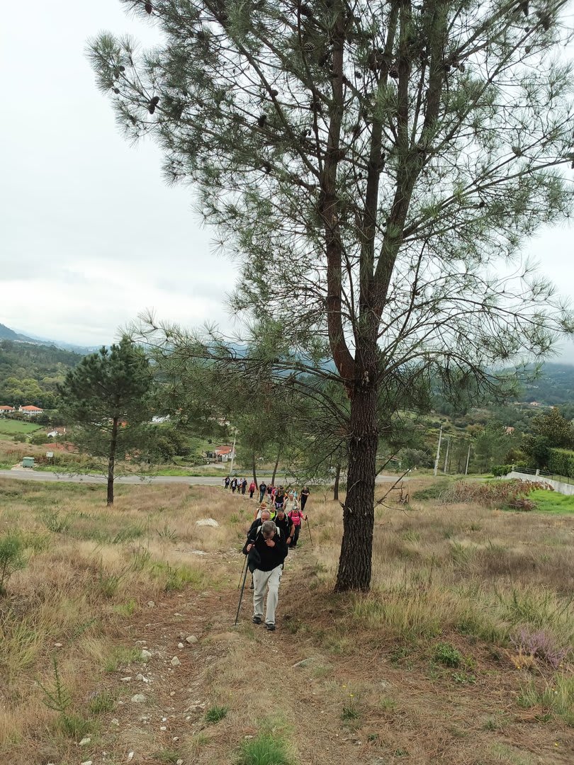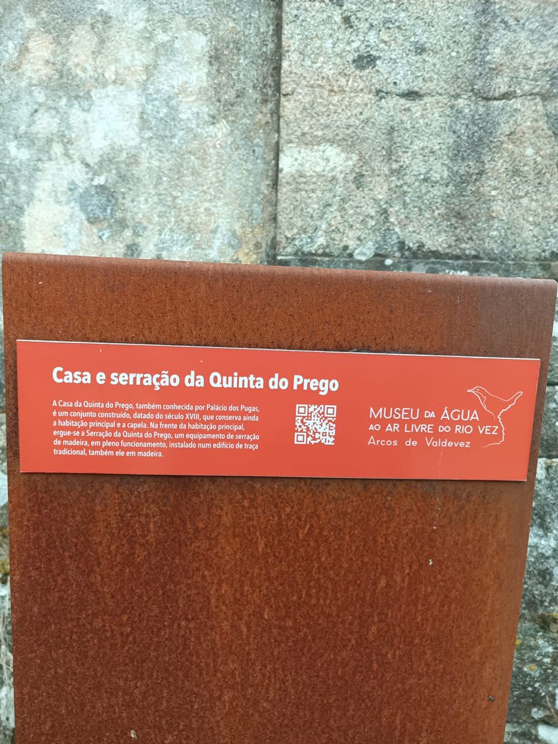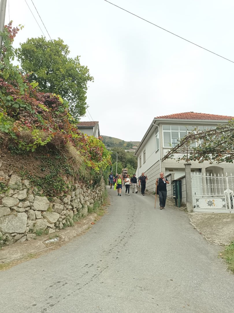 Pelas 09h50 demos início ao percurso, seguindo as indicações do Caminho Minhoto Ribeiro ou Rota da Fé, parte de um dos muitos caminhos mais antigos que ligam a cidade de Braga a Santiago. Caminhamos primeiro pela ecovia do Vez até atingirmos a Ponte Medieval de Vilela e, depois, abandonando a mesma em direção ao núcleo de Aboim das Choças, para aqui visitar, no ribeiro de Frades, um engenho de serração movido pela água do mesmo, junto à casa nobre da Quinta do Prego (em adiantado estado de degradação).