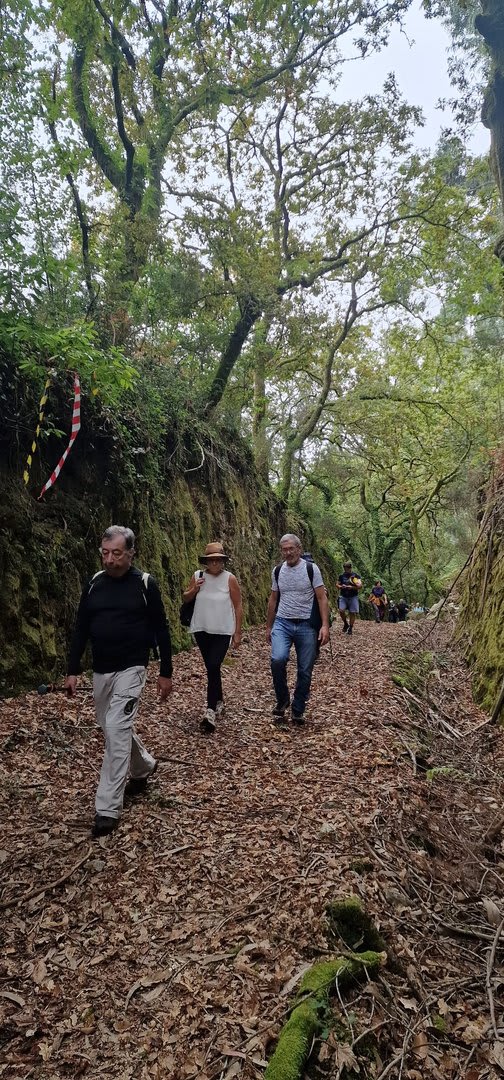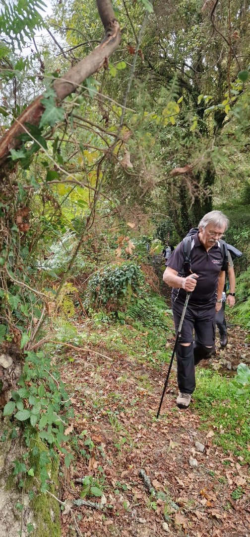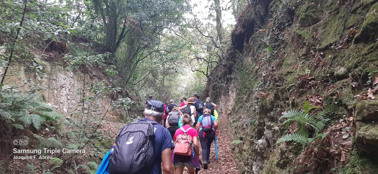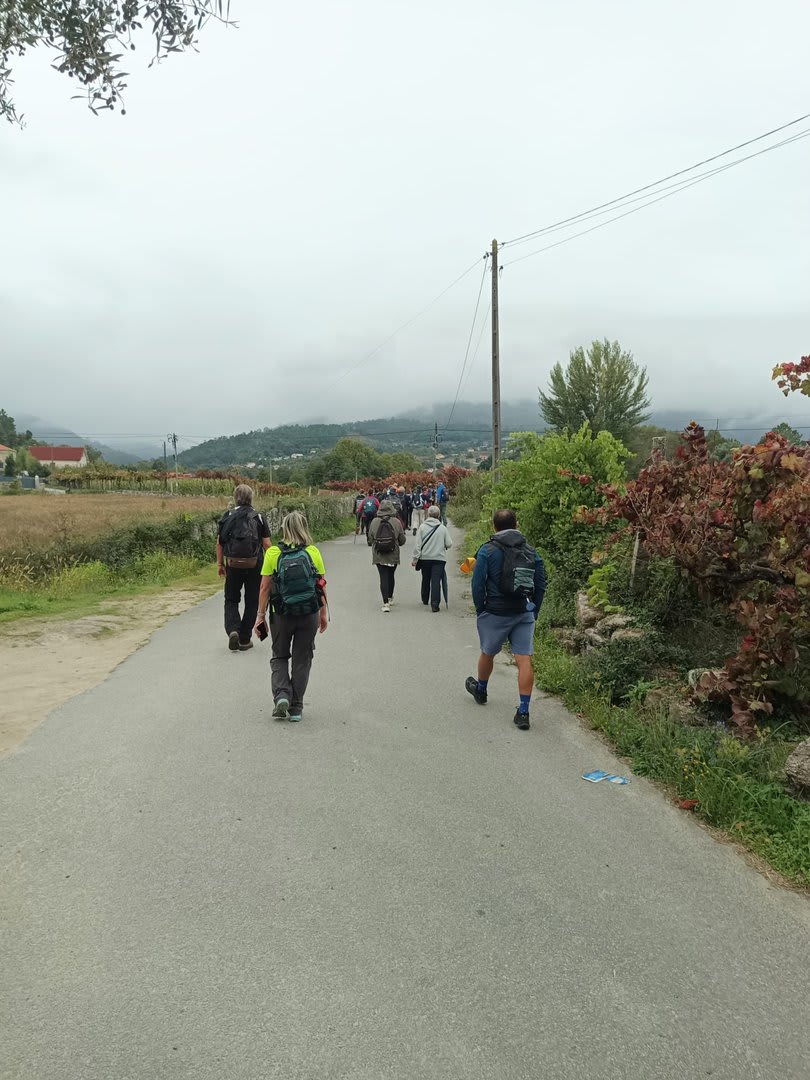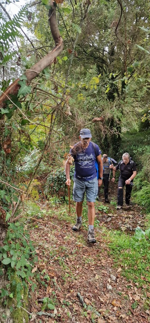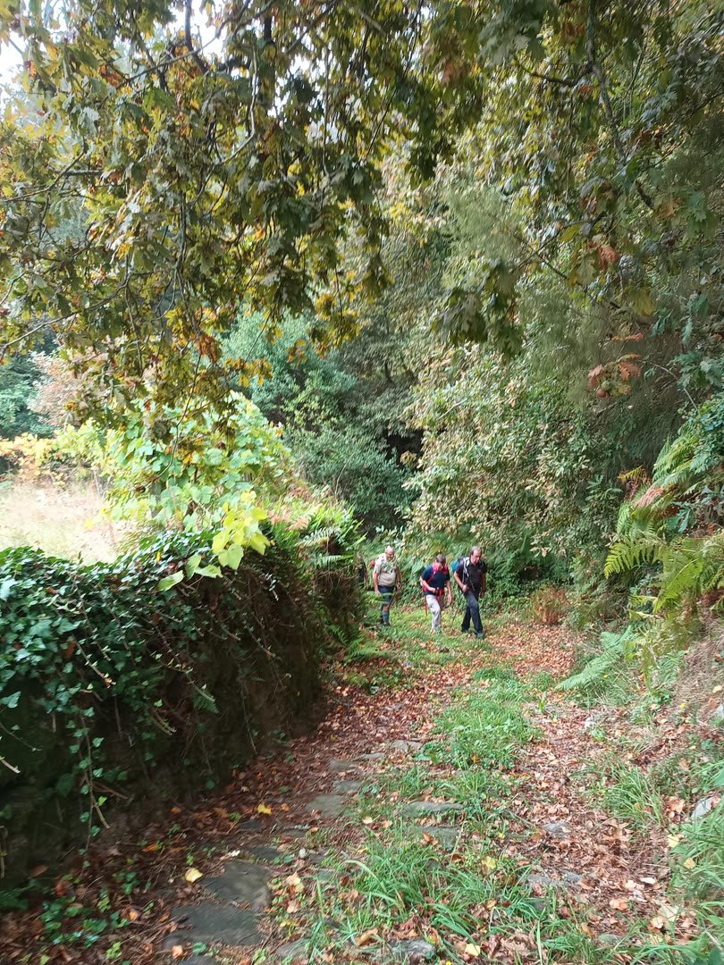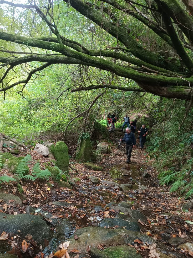 Pelas 09h50 demos início ao percurso, seguindo as indicações do Caminho Minhoto Ribeiro ou Rota da Fé, parte de um dos muitos caminhos mais antigos que ligam a cidade de Braga a Santiago. Caminhamos primeiro pela ecovia do Vez até atingirmos a Ponte Medieval de Vilela e, depois, abandonando a mesma em direção ao núcleo de Aboim das Choças, para aqui visitar, no ribeiro de Frades, um engenho de serração movido pela água do mesmo, junto à casa nobre da Quinta do Prego (em adiantado estado de degradação).