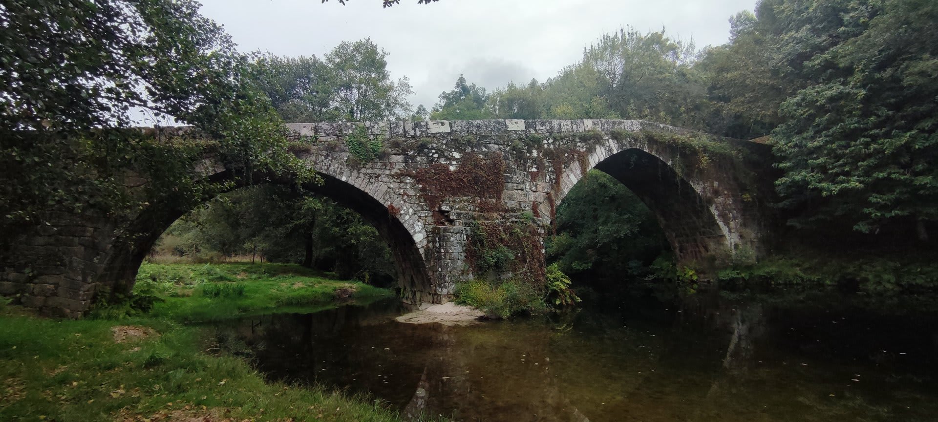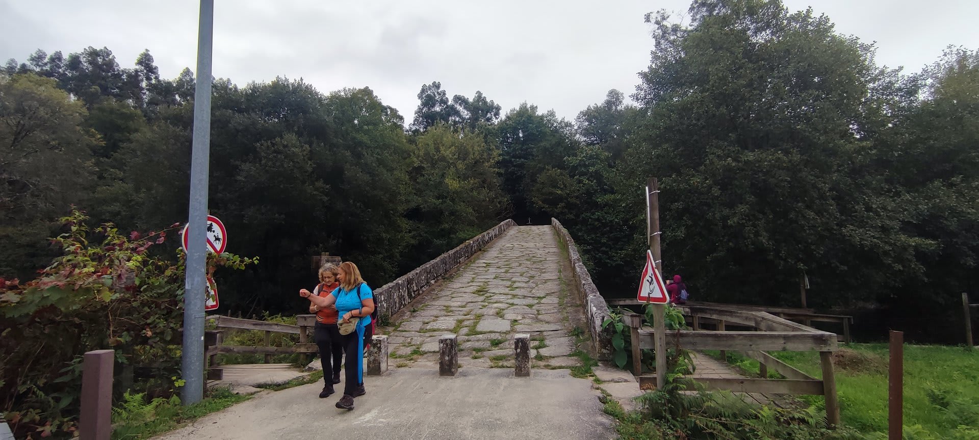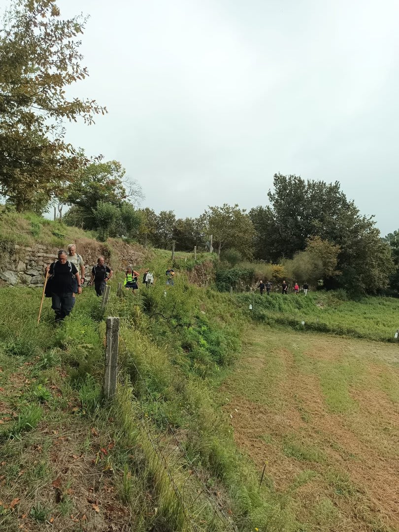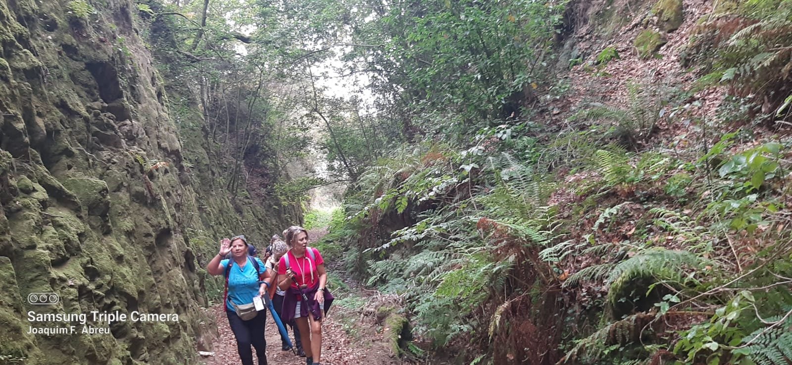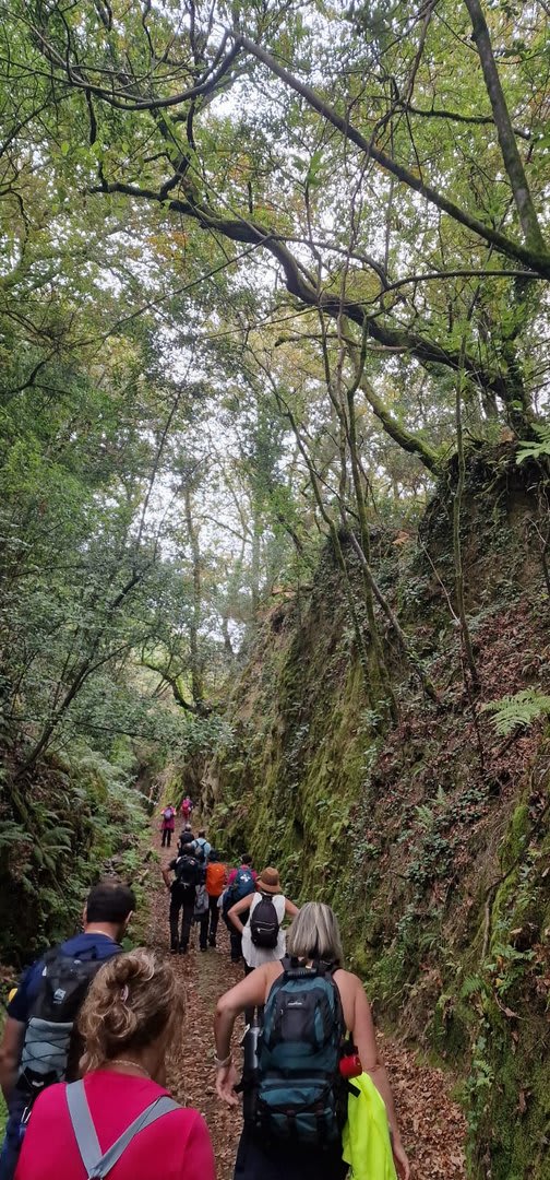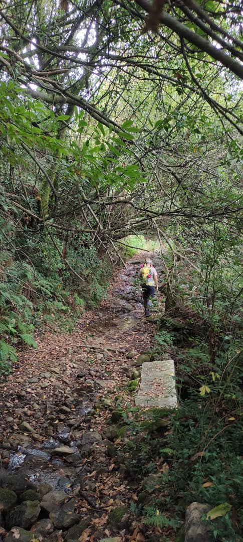 Pelas 09h50 demos início ao percurso, seguindo as indicações do Caminho Minhoto Ribeiro ou Rota da Fé, parte de um dos muitos caminhos mais antigos que ligam a cidade de Braga a Santiago. Caminhamos primeiro pela ecovia do Vez até atingirmos a Ponte Medieval de Vilela e, depois, abandonando a mesma em direção ao núcleo de Aboim das Choças, para aqui visitar, no ribeiro de Frades, um engenho de serração movido pela água do mesmo, junto à casa nobre da Quinta do Prego (em adiantado estado de degradação).