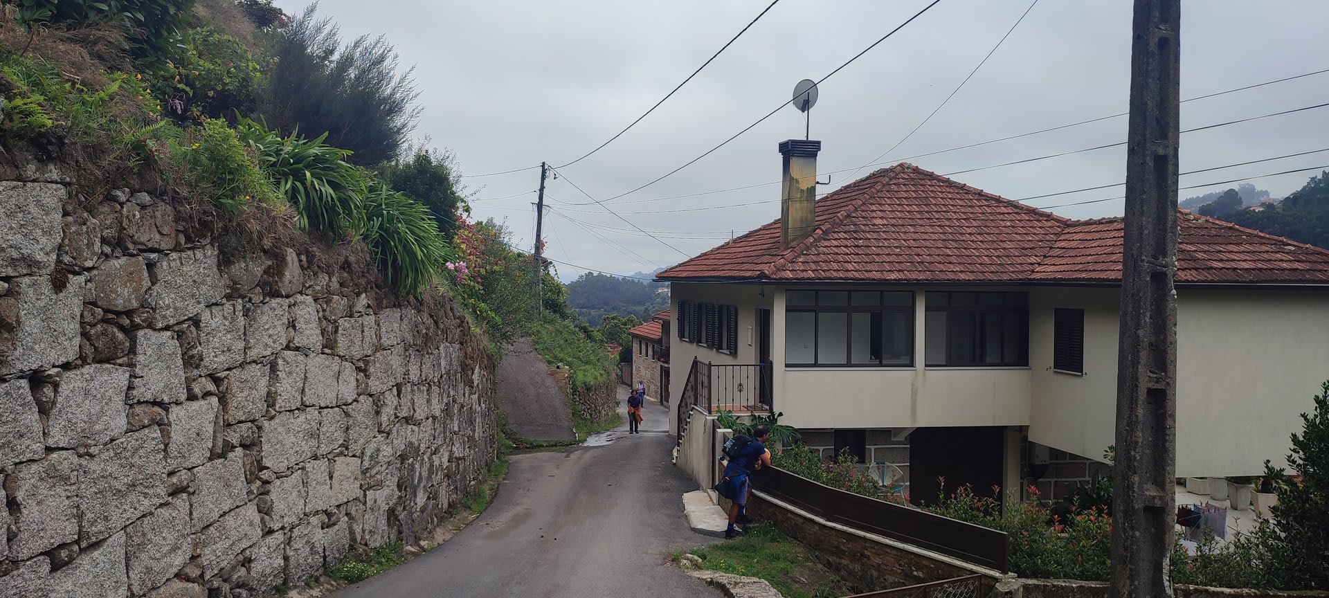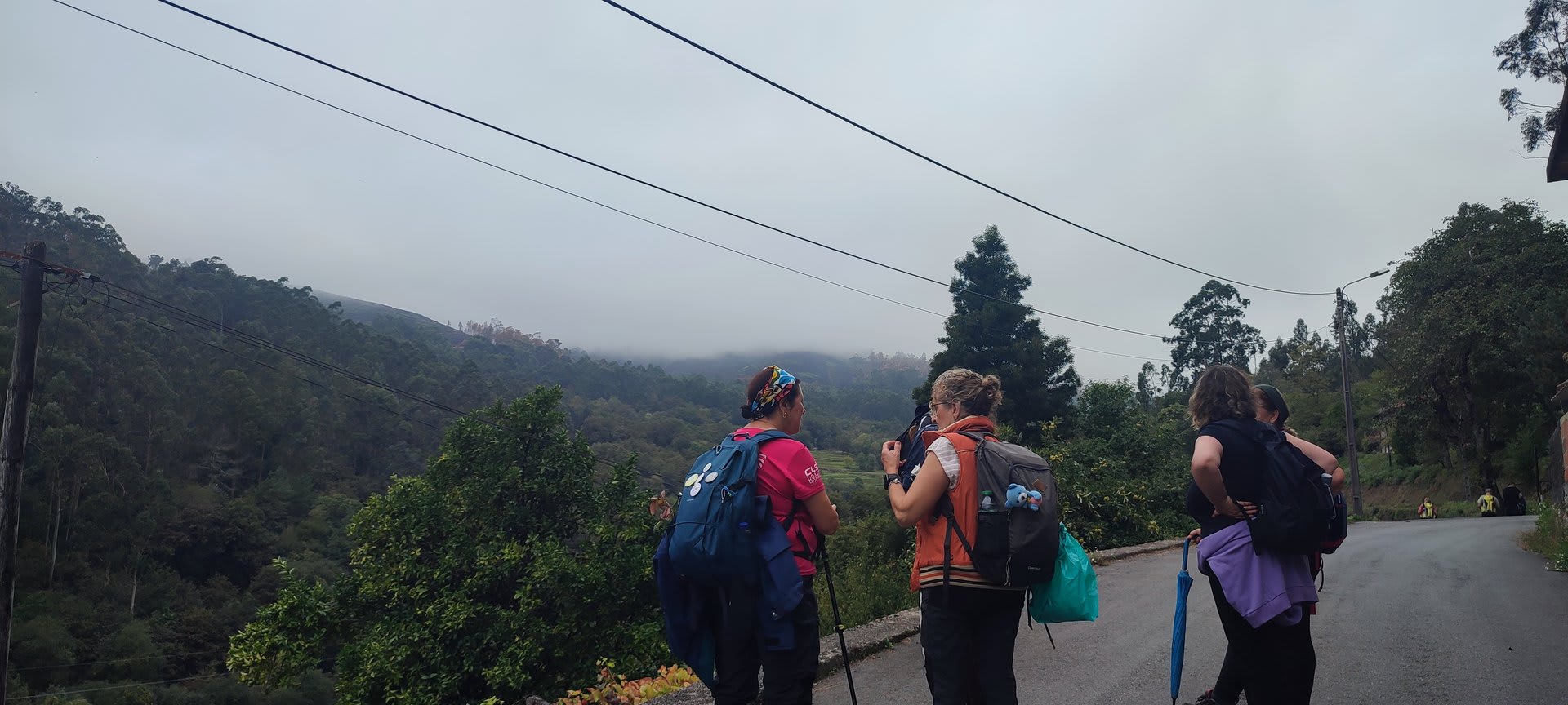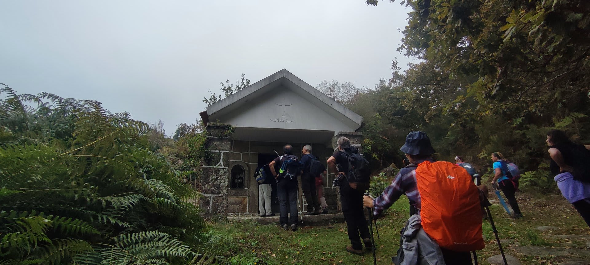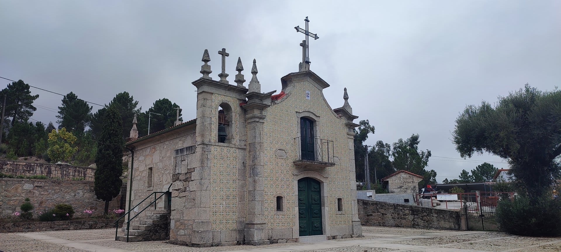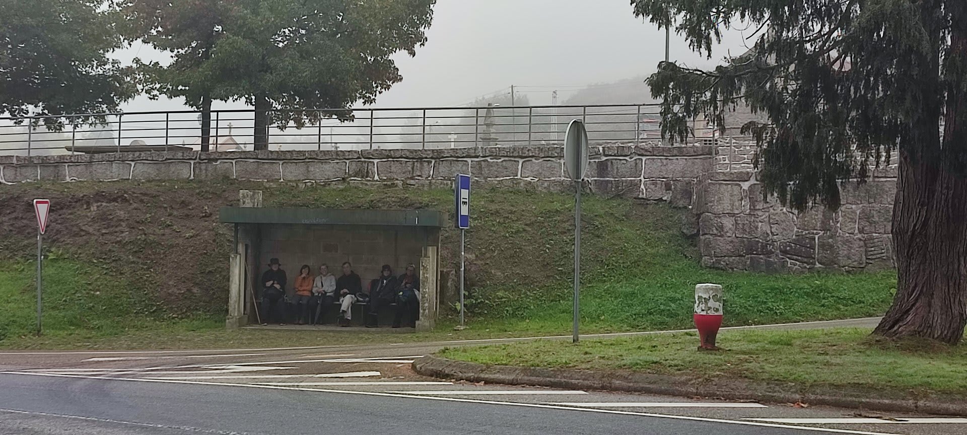 Sempre acompanhados da chuva miudinha, junto à igreja paroquial, abrigados debaixo do coreto e de um pequeno alpendre, fizemos o reabastecimento e merecido descanso.