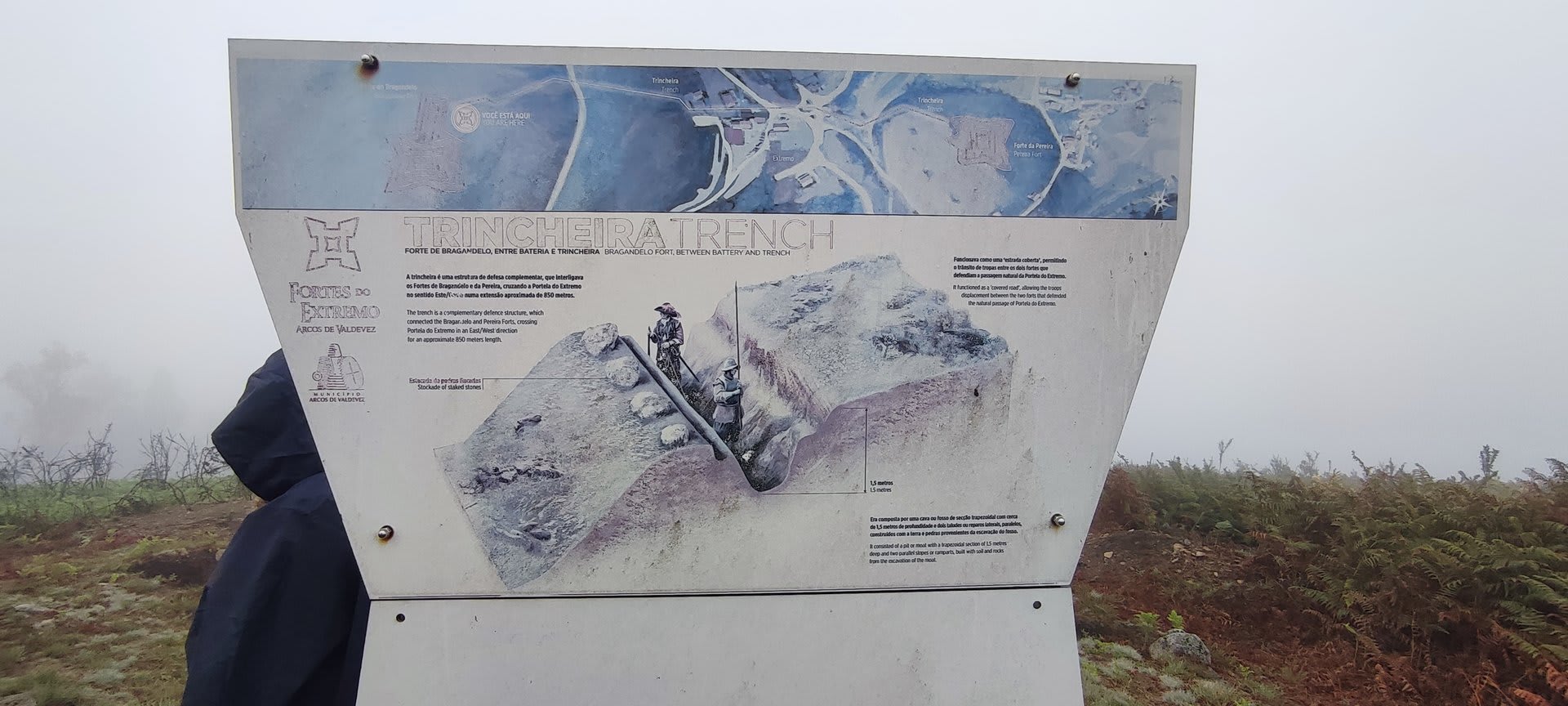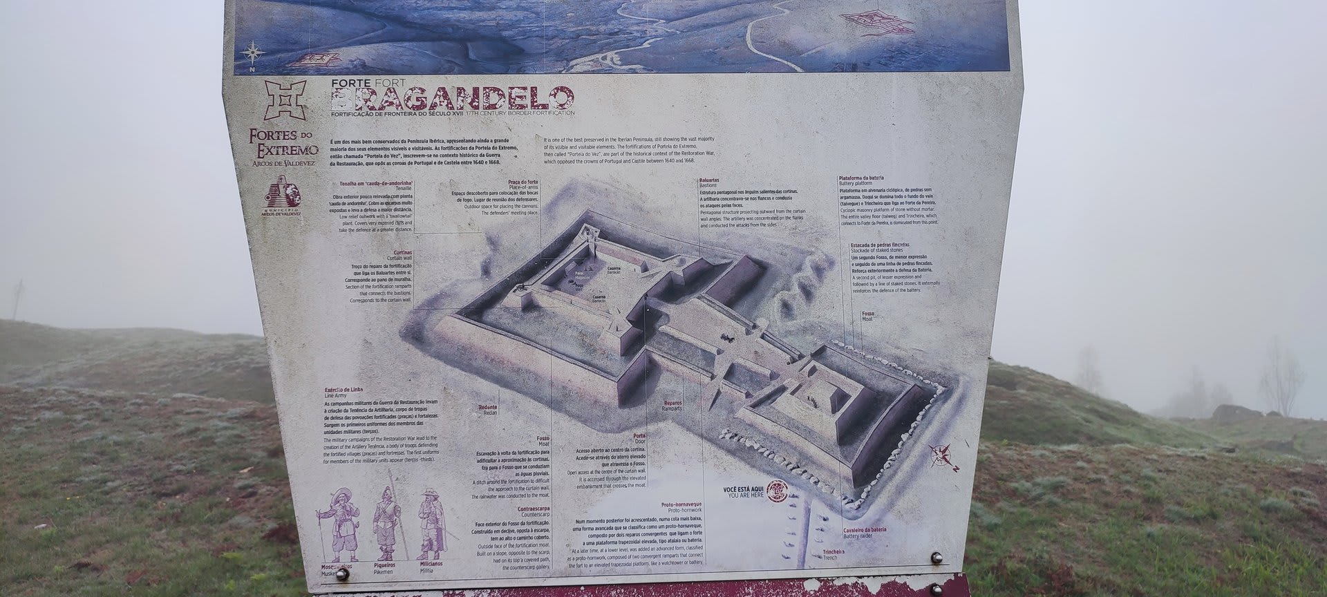 Mas o objetivo final era o Forte de Bragantelo, fortificação seiscentista construída em pedra solta e terra (séc. XVII), no âmbito da Guerra da Restauração, integrante numa estrutura defensiva da Portela do Extremo. Assim, após o reabastecimento, retomamos o percurso, tendo para isso de vencer uma íngreme subida. Lá fomos até ao alto onde, por entre o nevoeiro persistente, pudemos visitar a recuperação que está a ser feita na reabilitação da referida fortaleza que, juntamente com o Forte da Pereira instalado numa outra elevação, defenderam a invasão que os castelhanos tentaram fazer.
