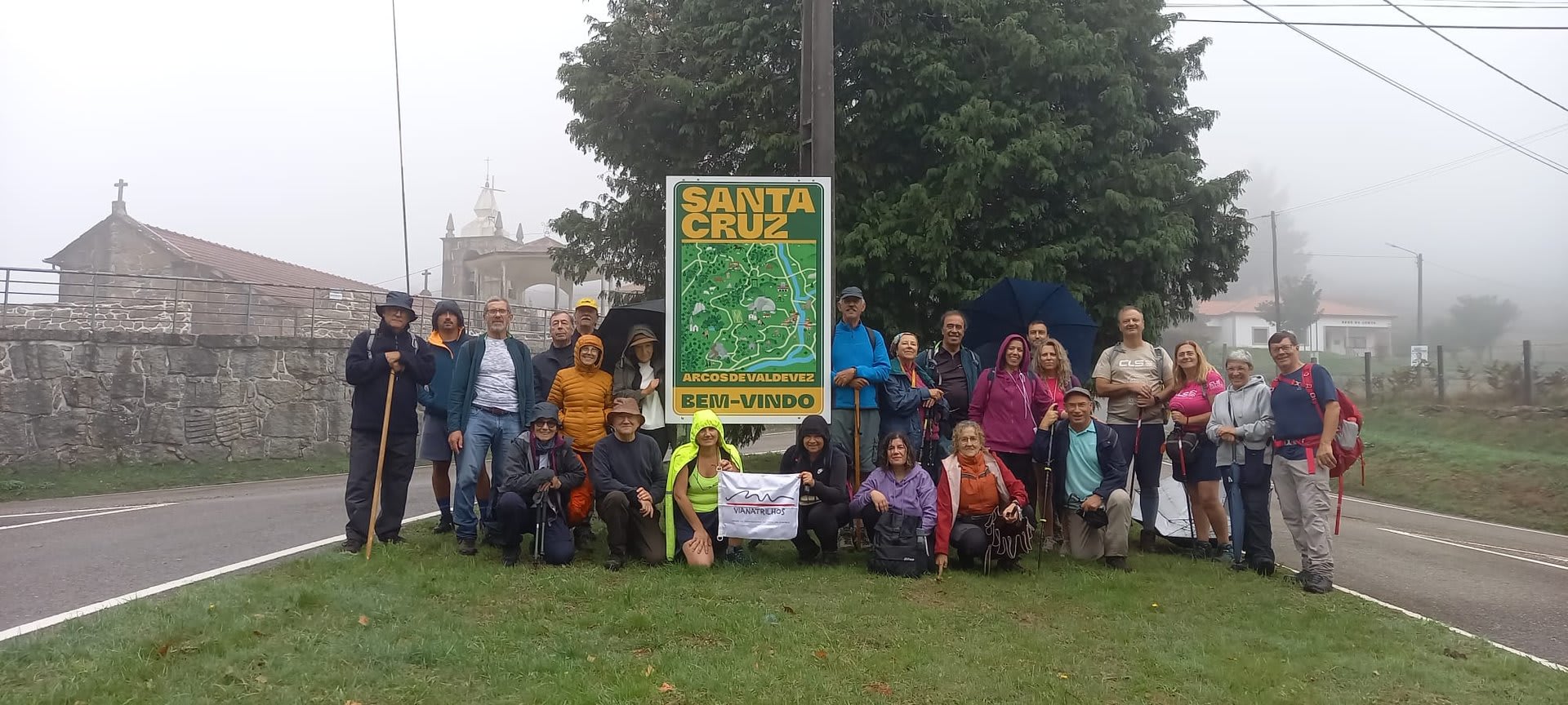 Feita a visita e sempre por entre o nevoeiro e a chuvinha persistente, lá regressamos até junto da igreja onde se encontravam as viaturas e local em que foi feita a fotografia de grupo.
