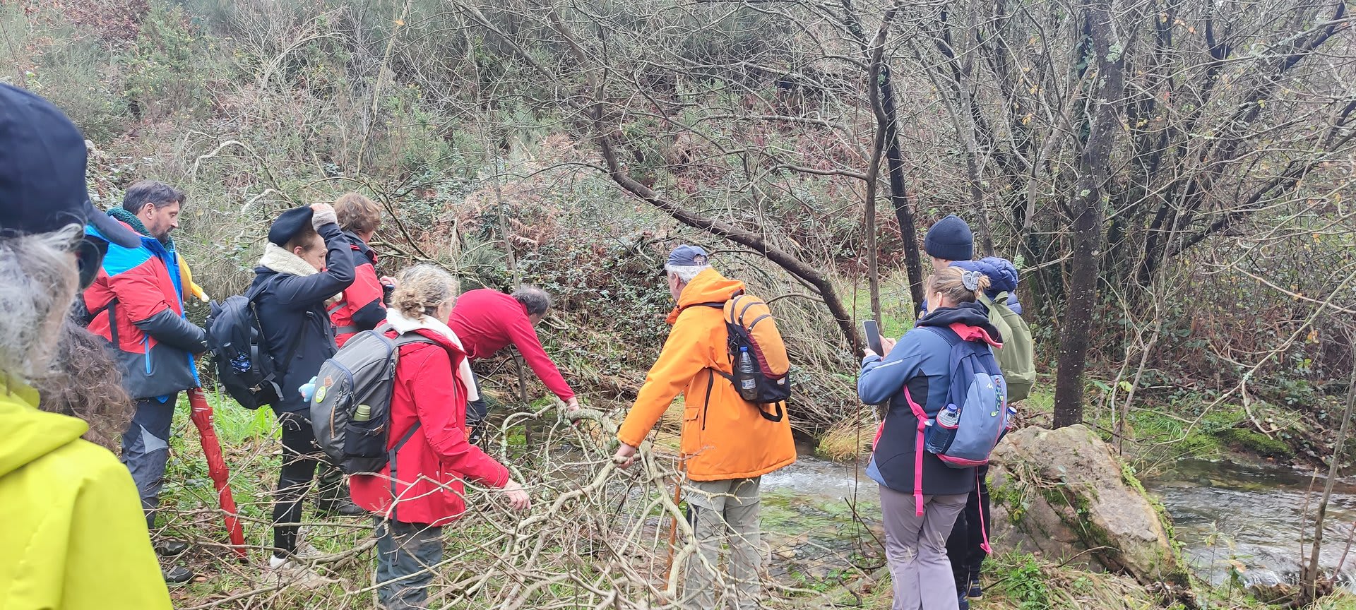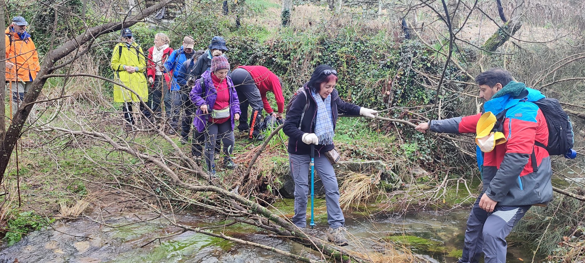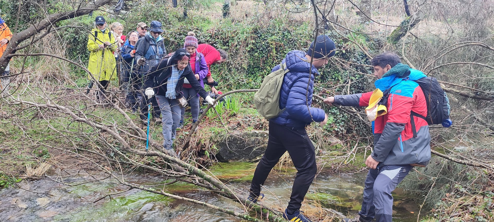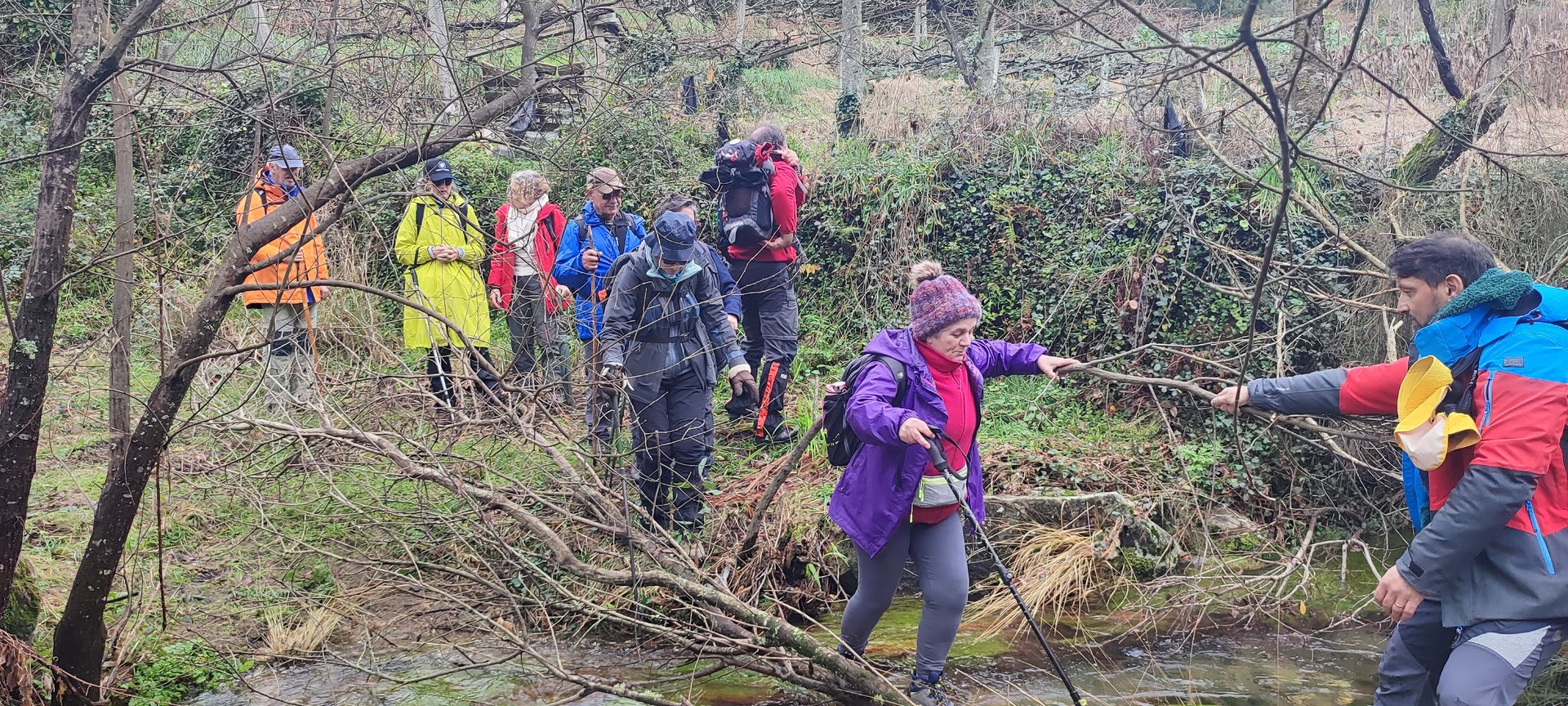 Continuámos e, na travessia do pequeno ribeiro que alimenta os moinhos de água, aconteceu que o mesmo se apresentava caudaloso, complicando a sua travessia.