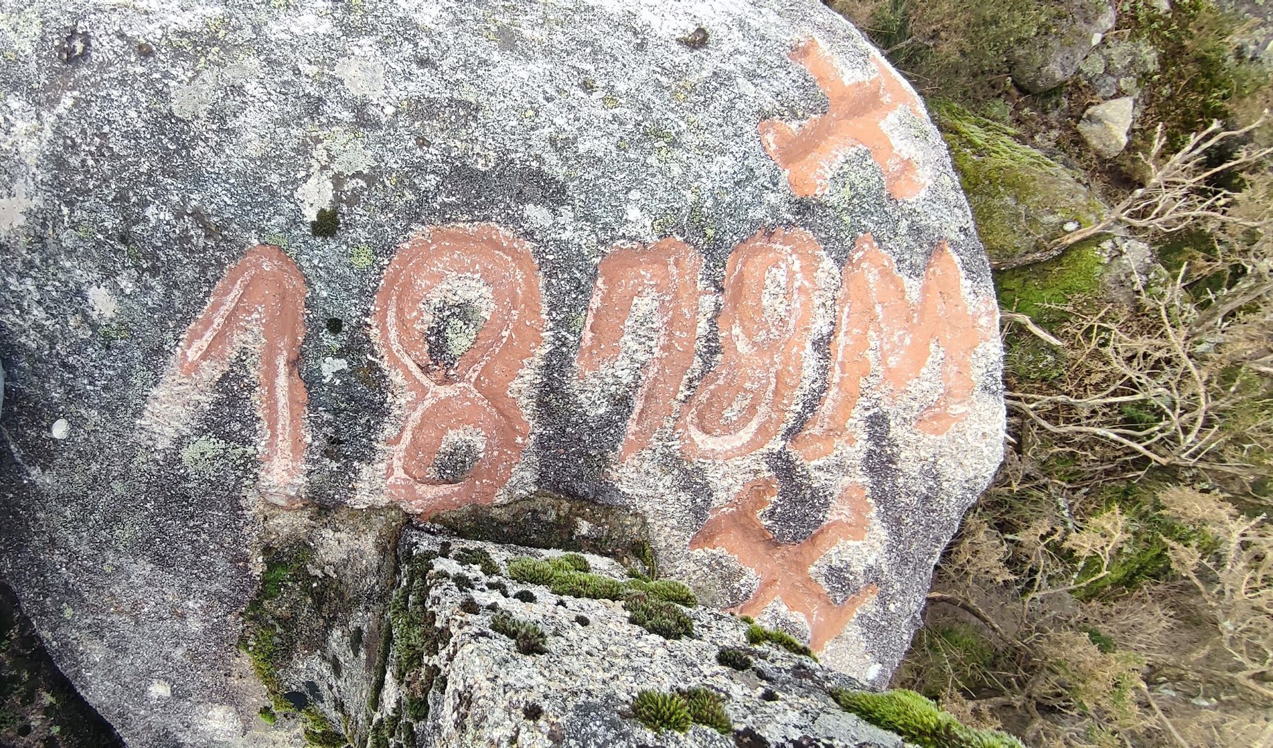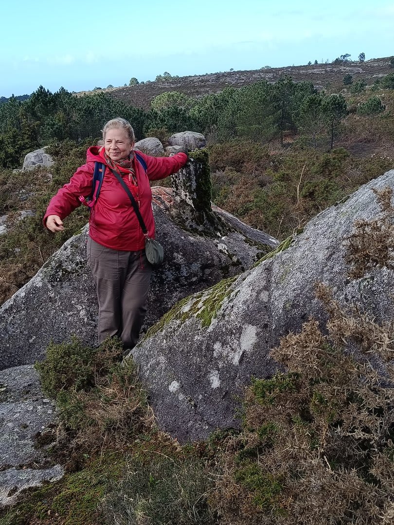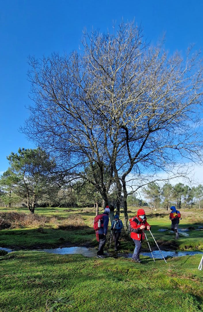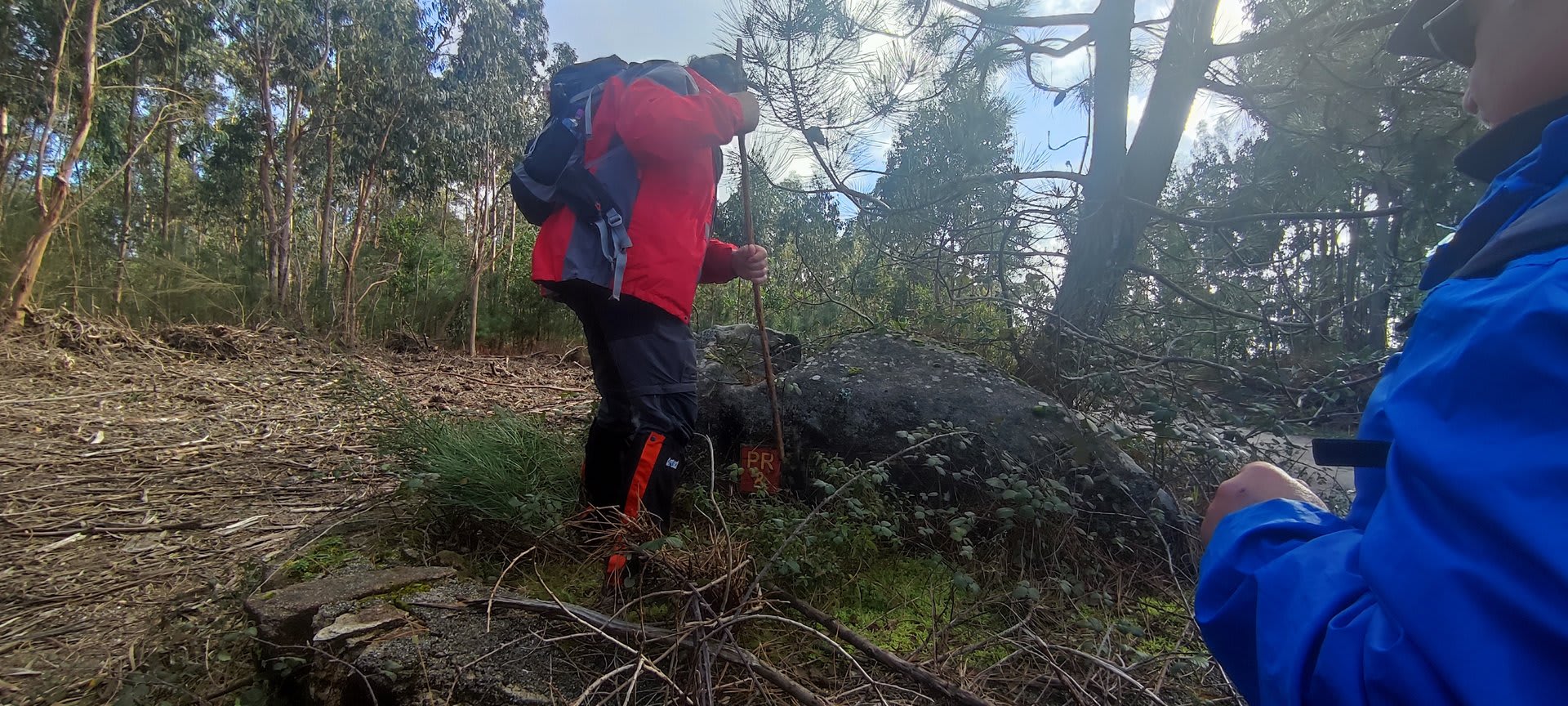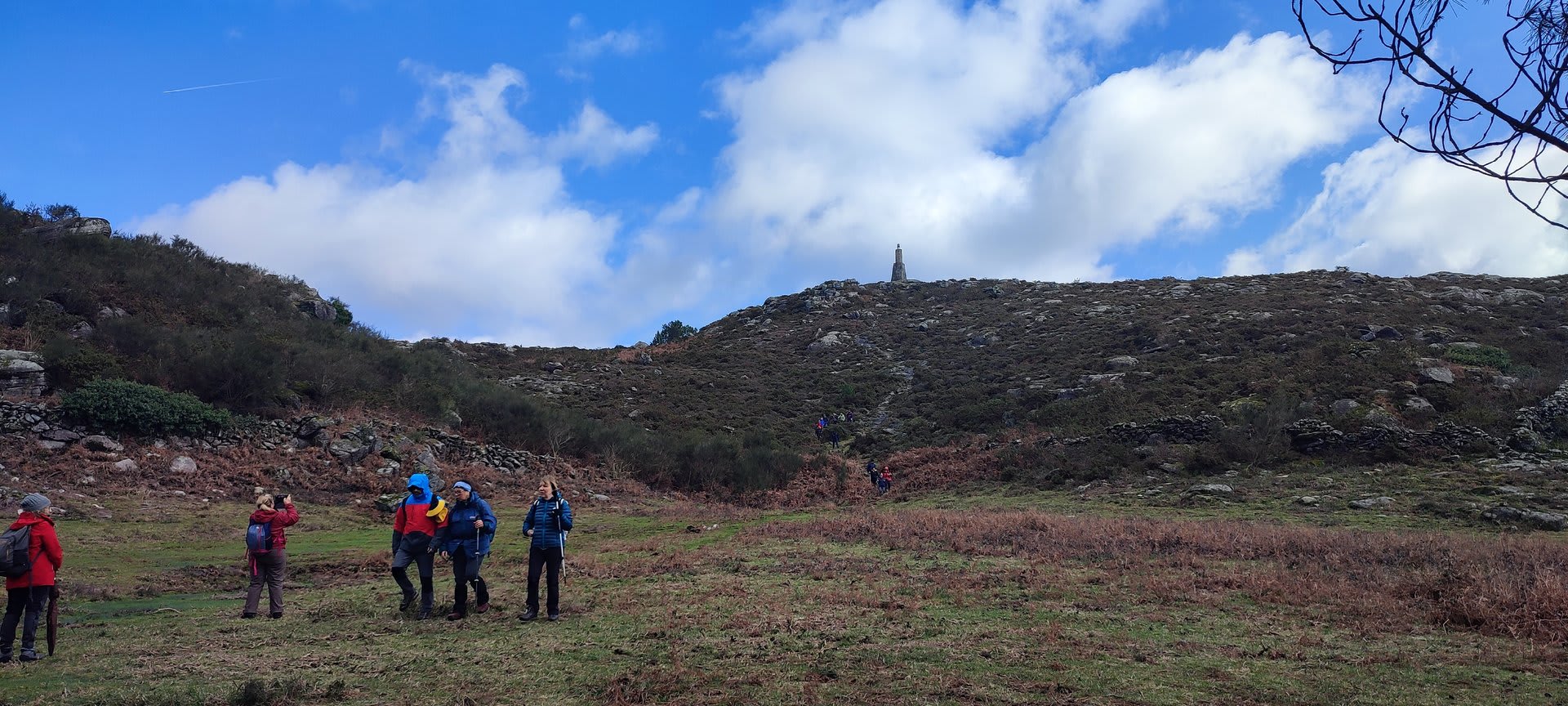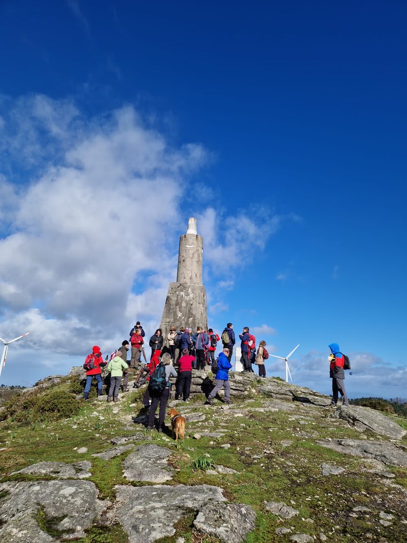 Após a foto de grupo e abandonando o talefe, com uma breve descida chegámos ao estradão florestal, local em que se inicia o retorno do percurso. Eis que surgiu a ideia de ir à procura do "Penedo da Era", já por nós visitado há já alguns anos. Após consulta ao grupo lá fomos então à sua procura, um pouco à descoberta — pois que não é tarefa fácil. Embrenhados num denso bosque de pinheiros, matos e com terrenos muito alagados, com algum custo lá conseguimos encontrar o dito penedo, onde se encontra assinalado com marcação e datação, e de onde parte a indicação dos limites territoriais das freguesias de Outeiro, Carreço, Afife e Areosa — locais antigamente muito disputados, mas hoje memória viva de árduos trabalhos de lavoura.