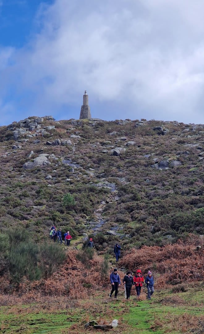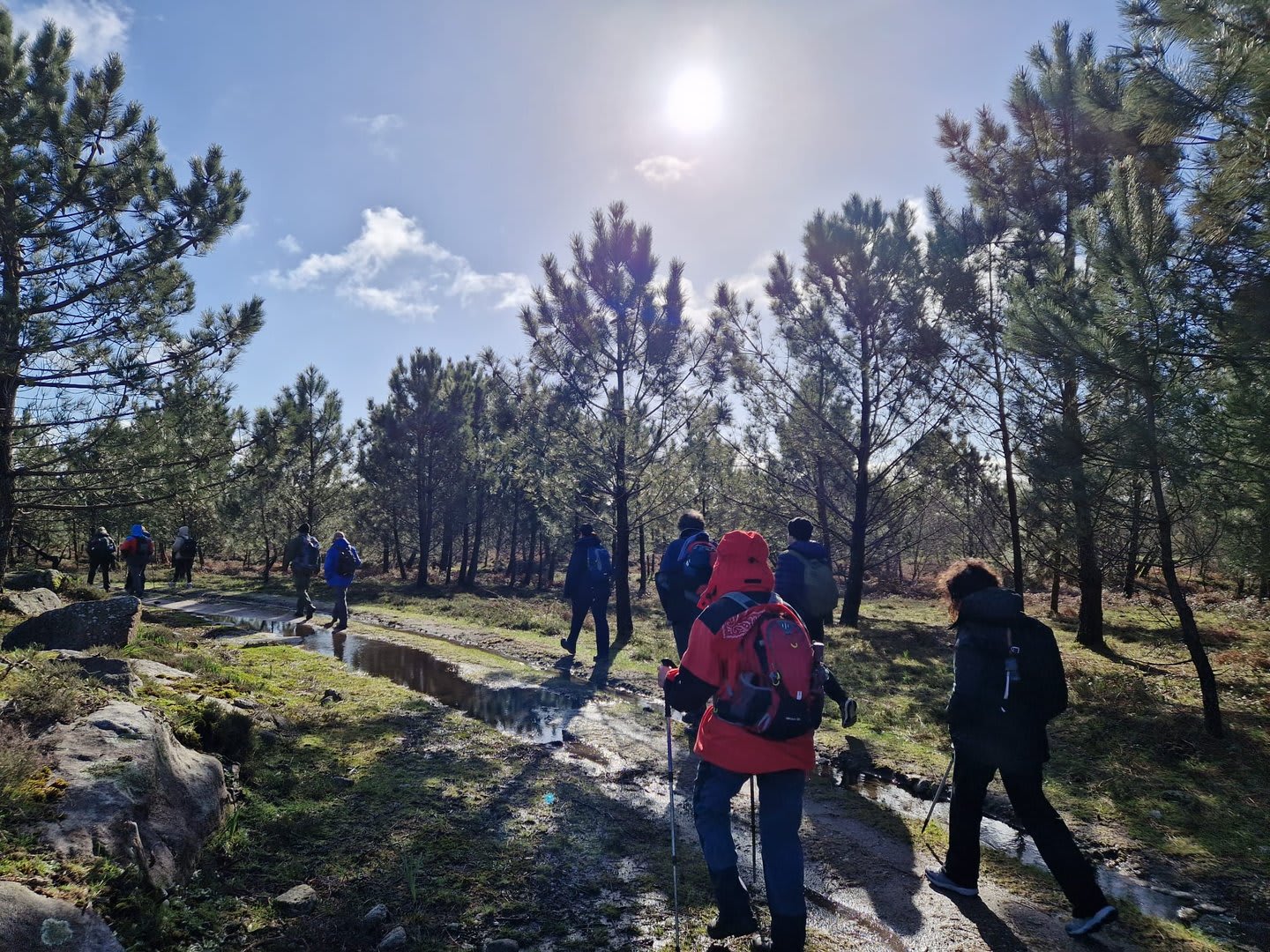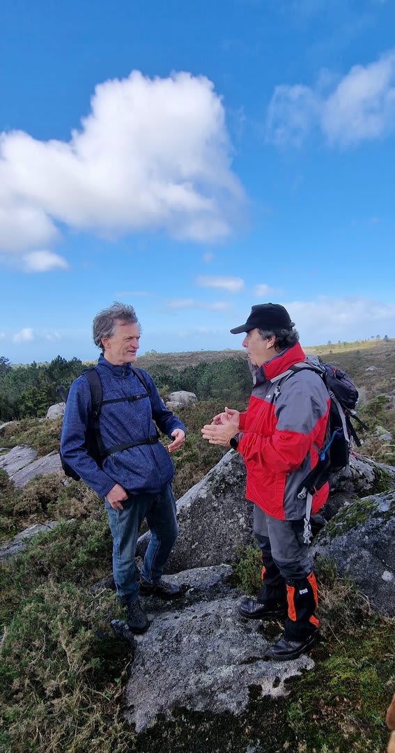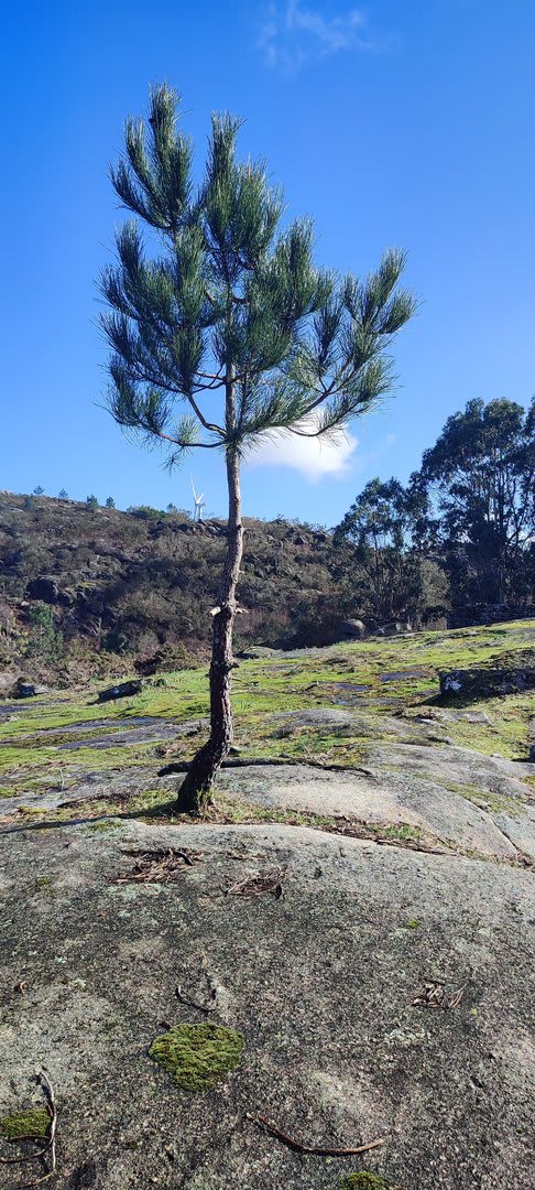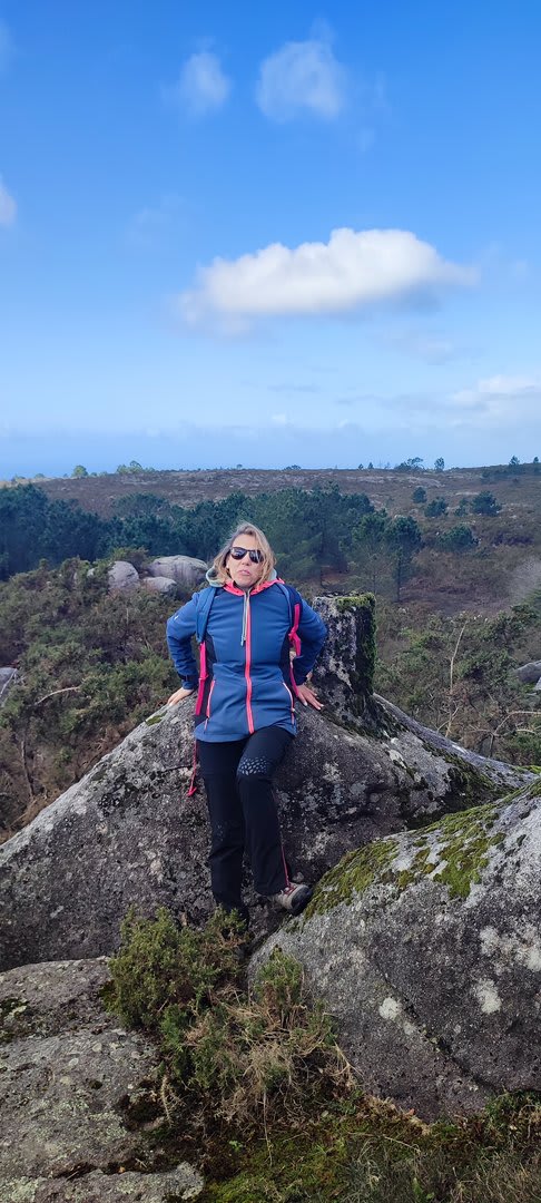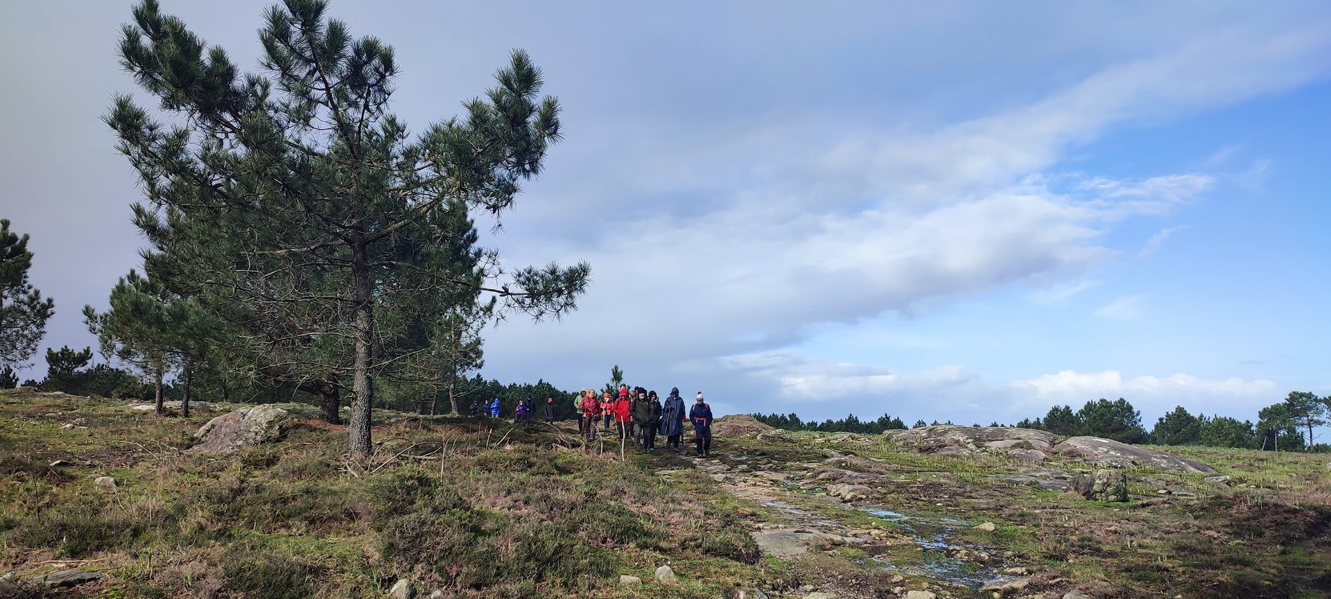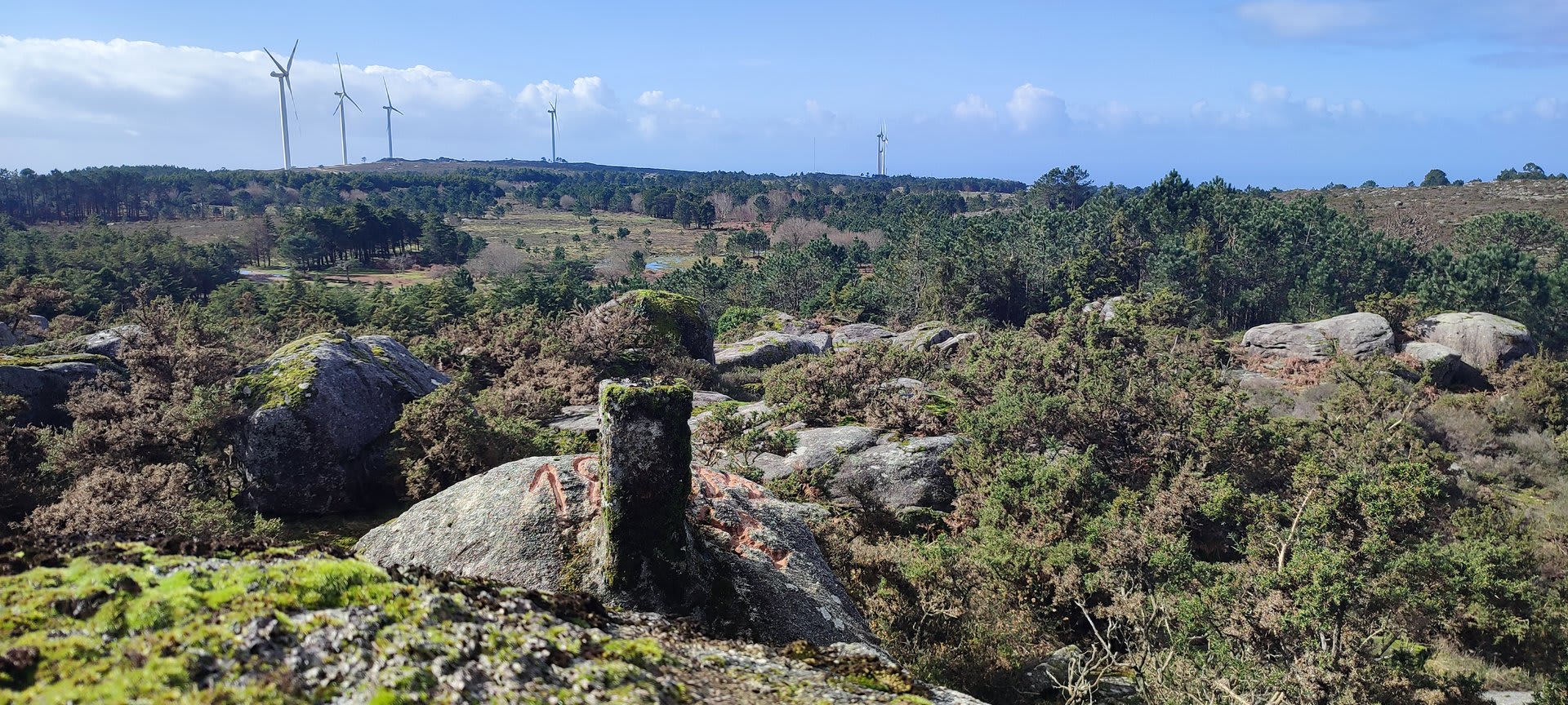 Após a foto de grupo e abandonando o talefe, com uma breve descida chegámos ao estradão florestal, local em que se inicia o retorno do percurso. Eis que surgiu a ideia de ir à procura do "Penedo da Era", já por nós visitado há já alguns anos. Após consulta ao grupo lá fomos então à sua procura, um pouco à descoberta — pois que não é tarefa fácil. Embrenhados num denso bosque de pinheiros, matos e com terrenos muito alagados, com algum custo lá conseguimos encontrar o dito penedo, onde se encontra assinalado com marcação e datação, e de onde parte a indicação dos limites territoriais das freguesias de Outeiro, Carreço, Afife e Areosa — locais antigamente muito disputados, mas hoje memória viva de árduos trabalhos de lavoura.