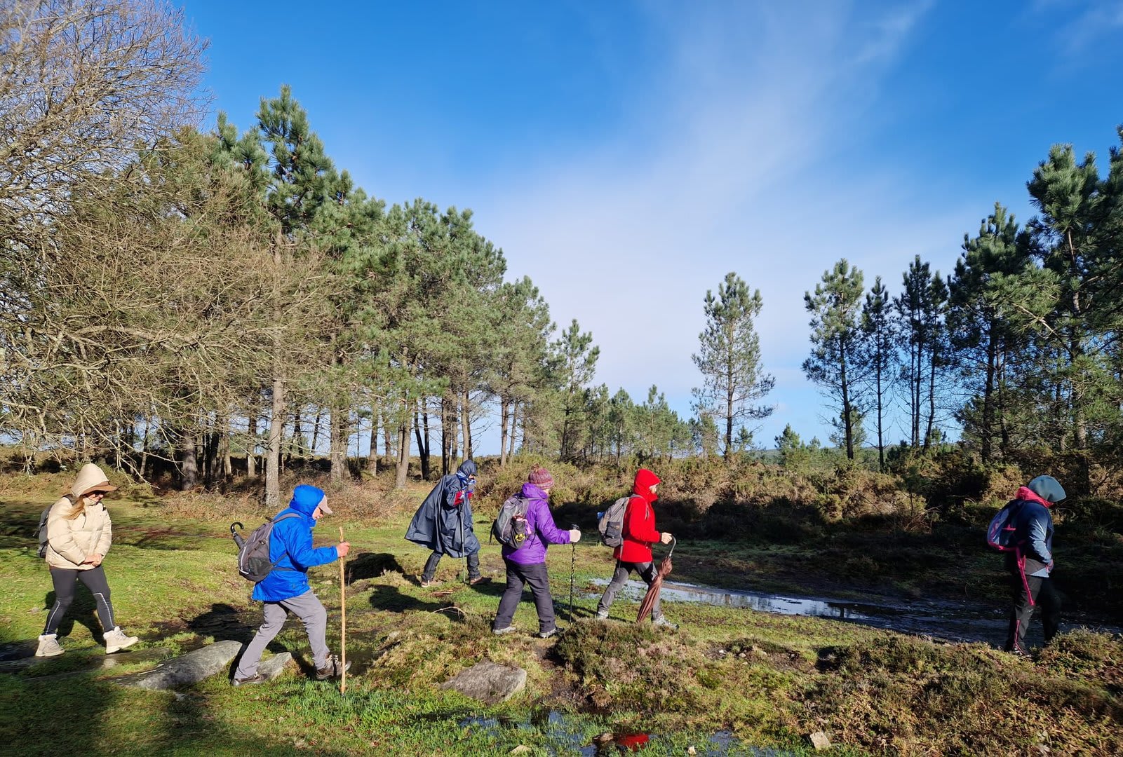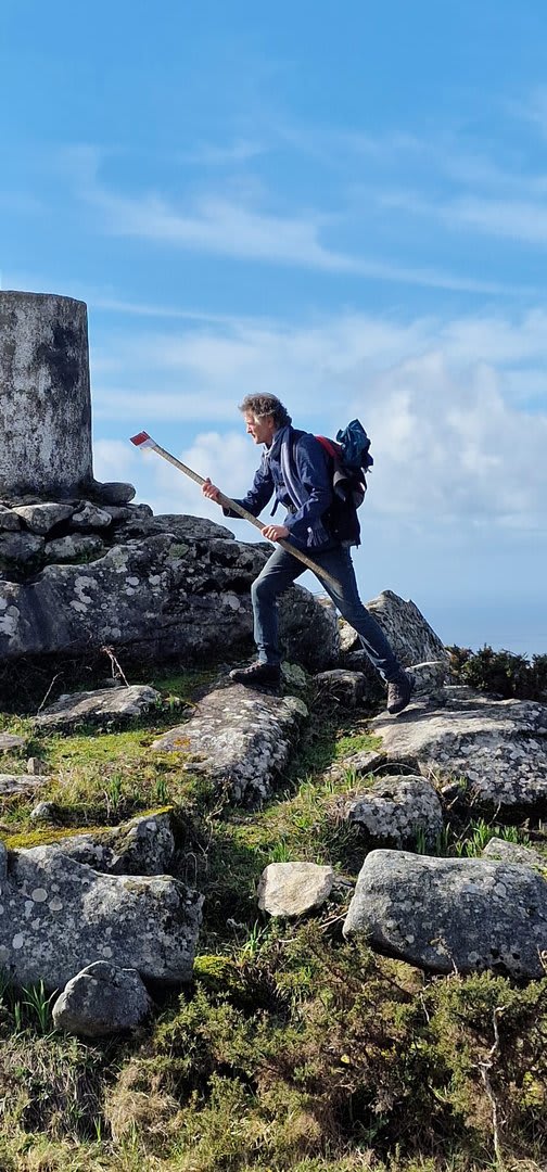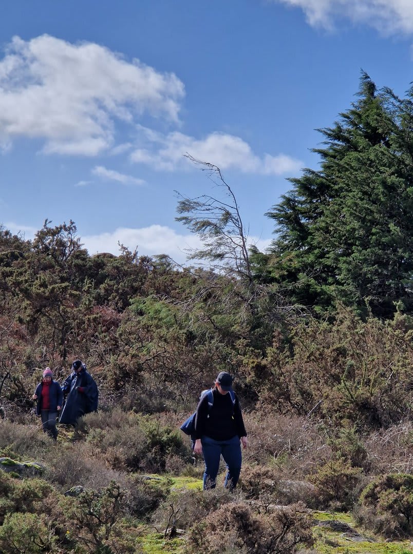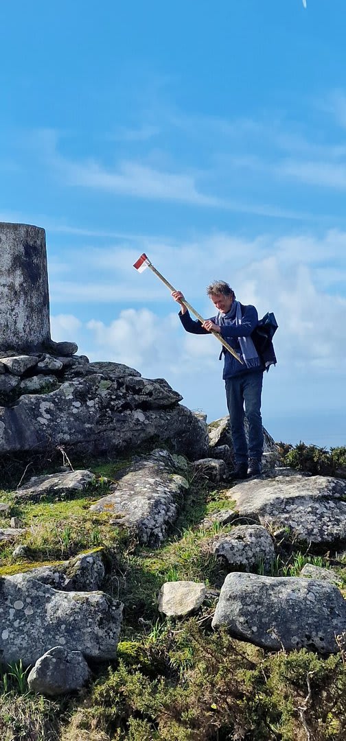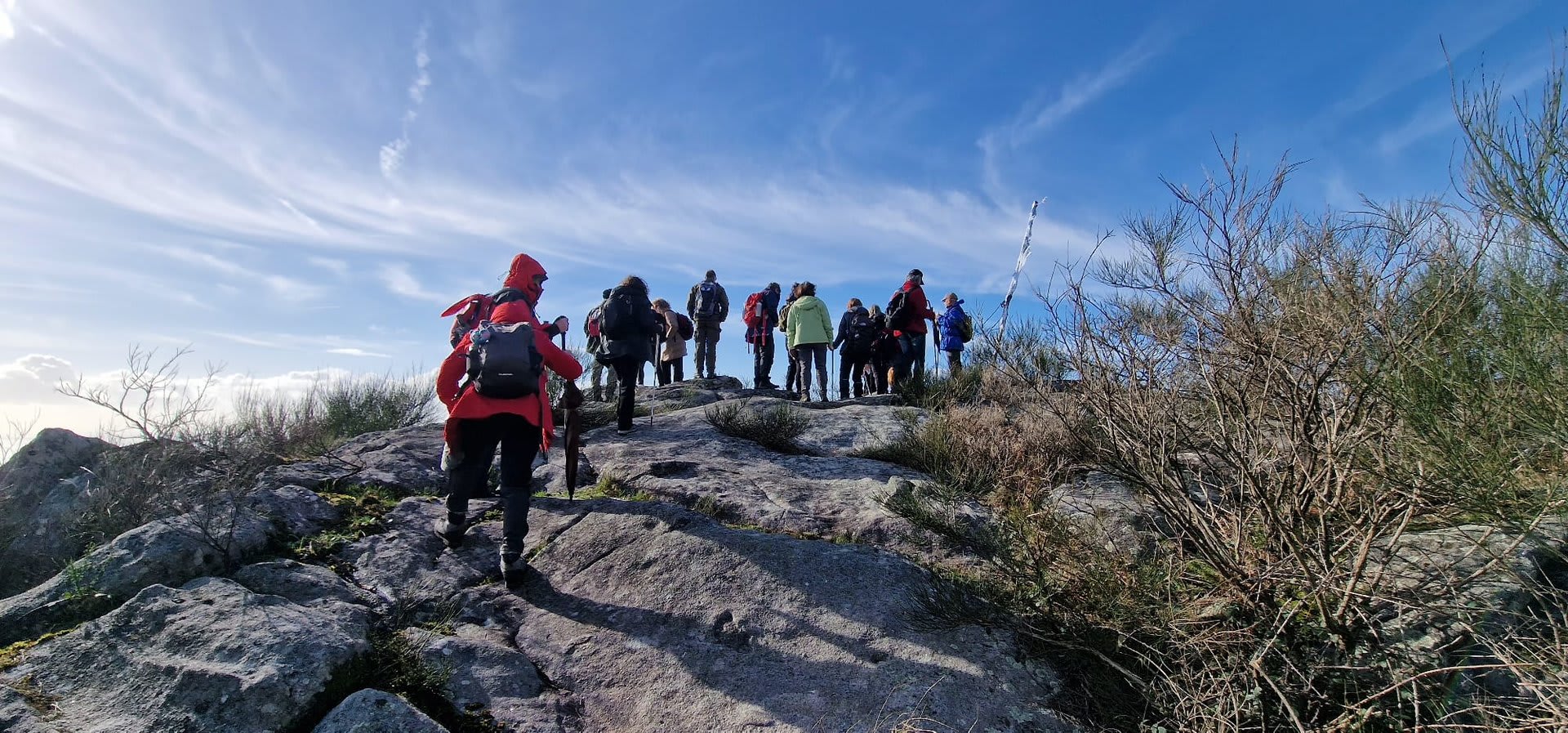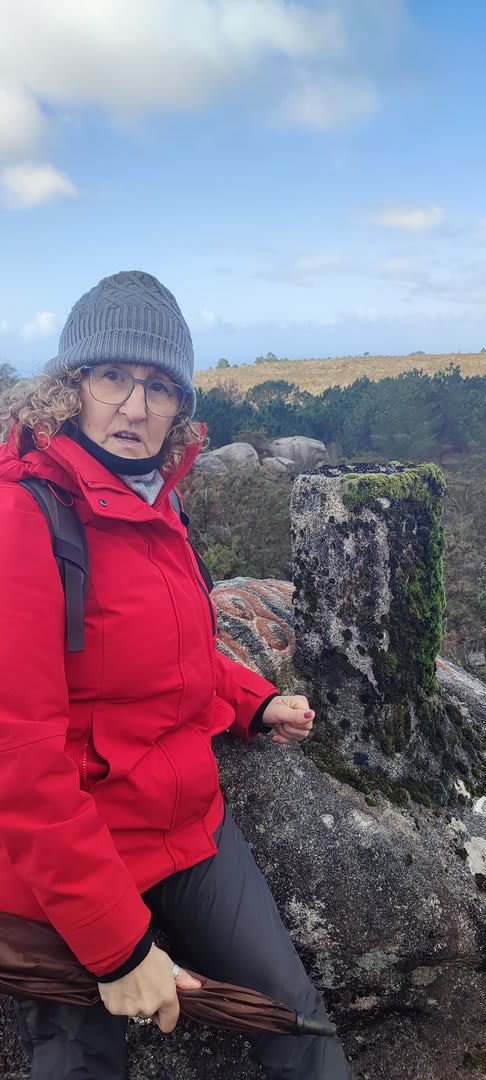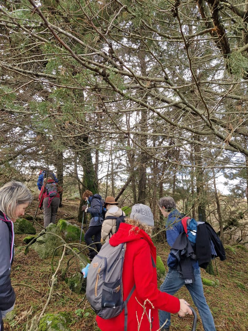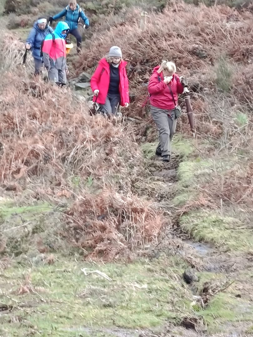 Após a foto de grupo e abandonando o talefe, com uma breve descida chegámos ao estradão florestal, local em que se inicia o retorno do percurso. Eis que surgiu a ideia de ir à procura do "Penedo da Era", já por nós visitado há já alguns anos. Após consulta ao grupo lá fomos então à sua procura, um pouco à descoberta — pois que não é tarefa fácil. Embrenhados num denso bosque de pinheiros, matos e com terrenos muito alagados, com algum custo lá conseguimos encontrar o dito penedo, onde se encontra assinalado com marcação e datação, e de onde parte a indicação dos limites territoriais das freguesias de Outeiro, Carreço, Afife e Areosa — locais antigamente muito disputados, mas hoje memória viva de árduos trabalhos de lavoura.