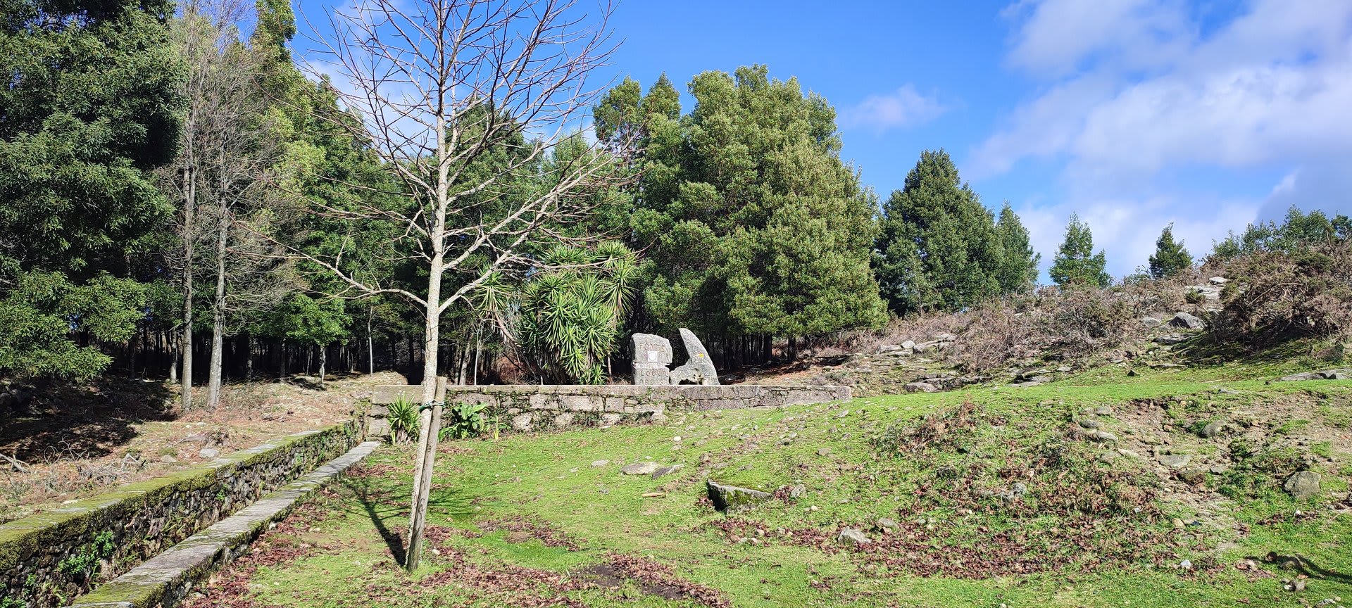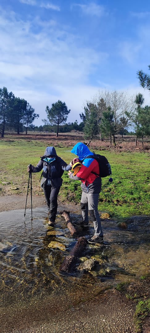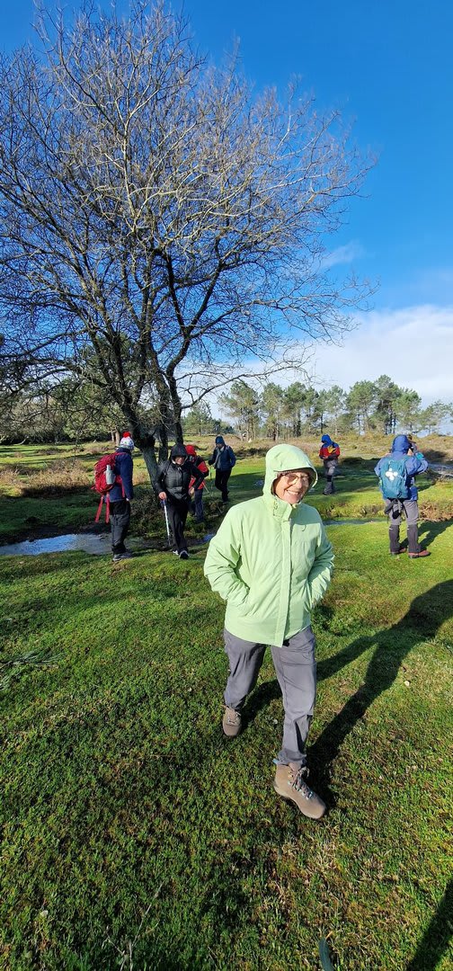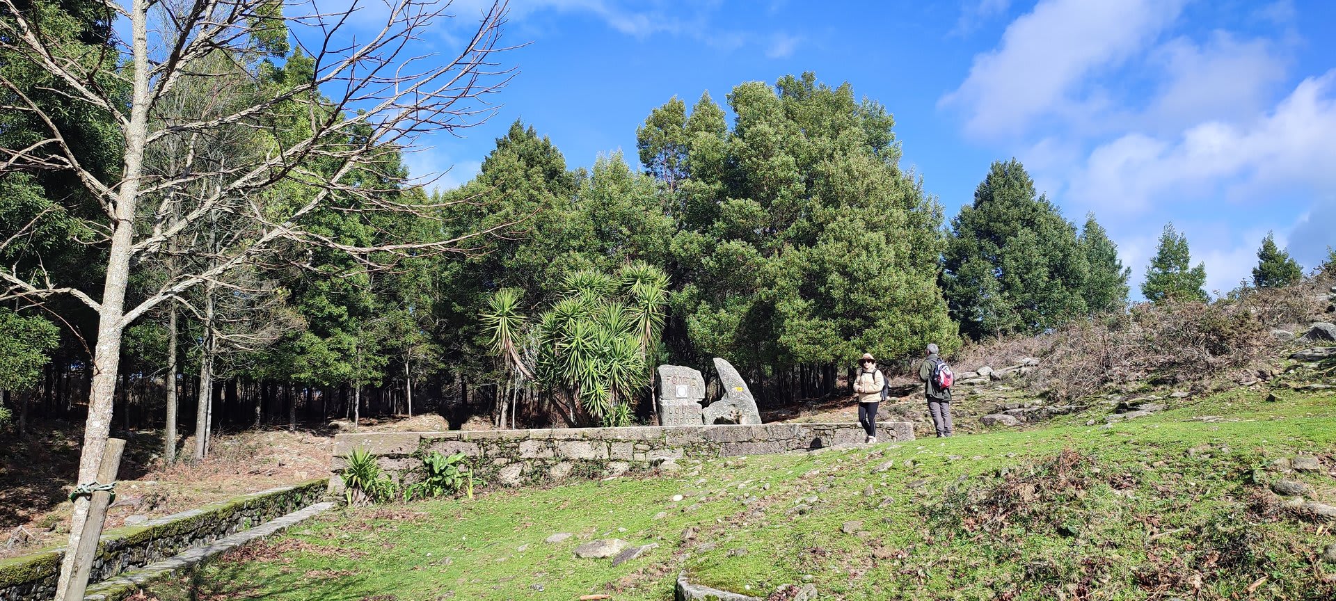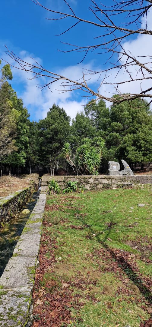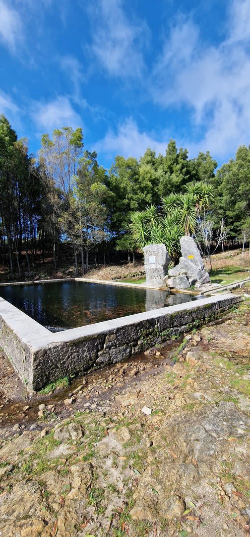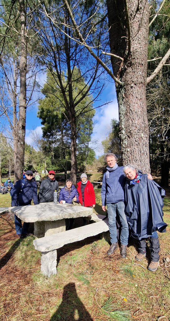Aqui, após a foto de grupo e voltando ao estradão, iniciámos o regresso caminhando ao longo da Chão até atingirmos o local do antigo viveiro florestal da "Fonte Louçã", onde bem perto nasce o rio do Pêgo ou rio de Areosa. Este local está agora bem tratado, com um parque de merendas com várias mesas e um bom tanque de água que no verão faz as delícias de quem lá está. Aqui foi feito o almoço e um merecido repouso.