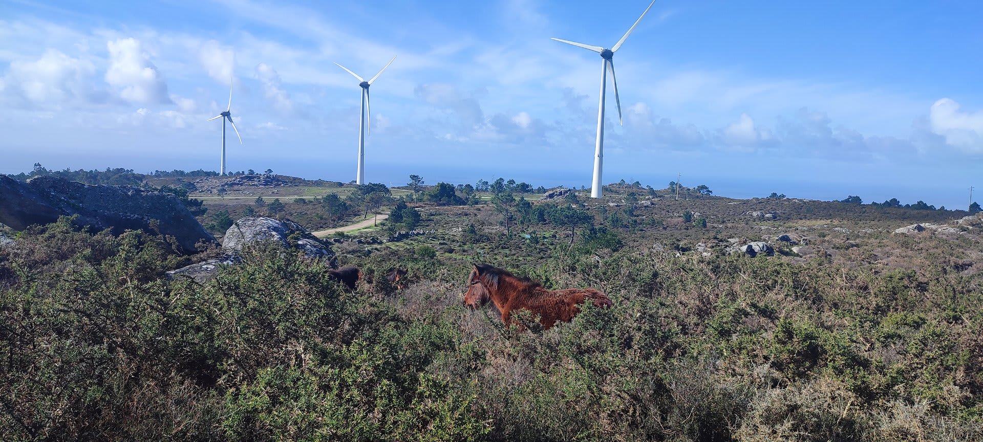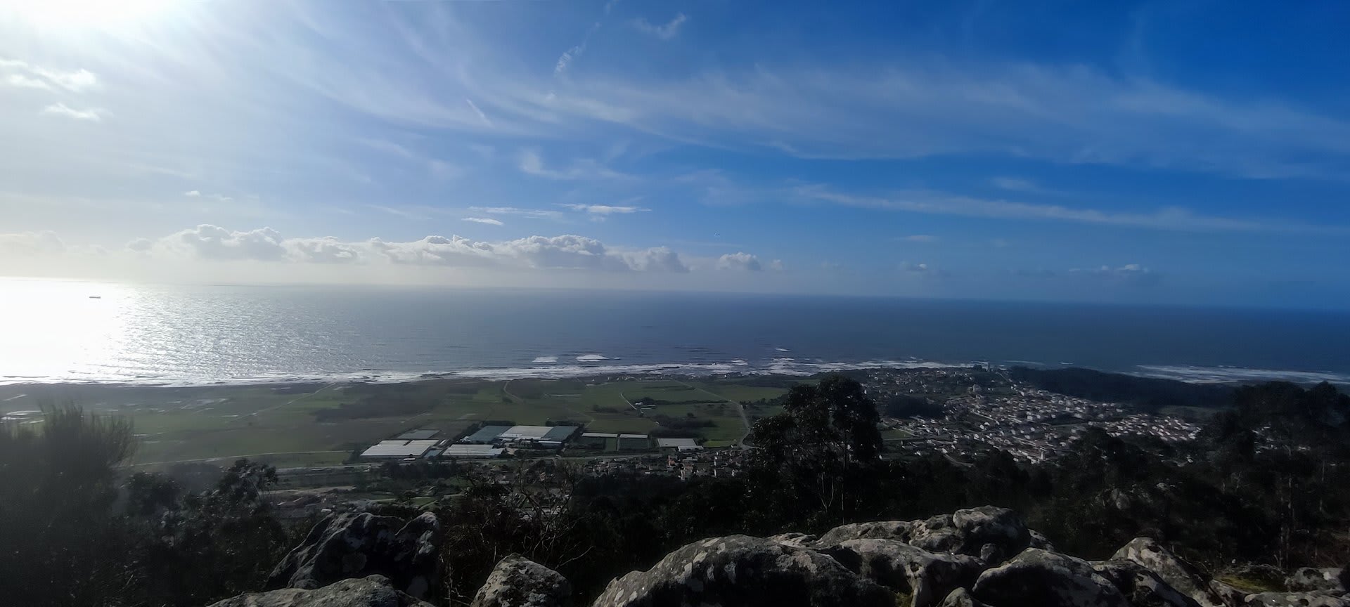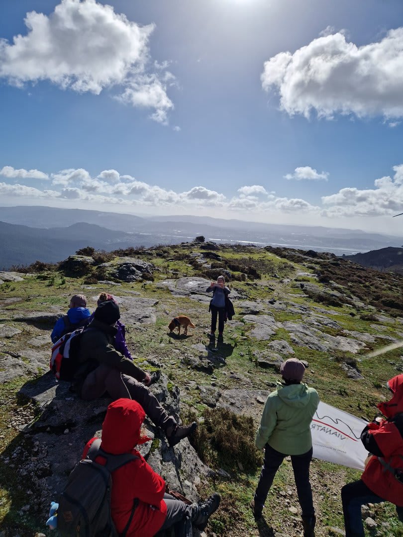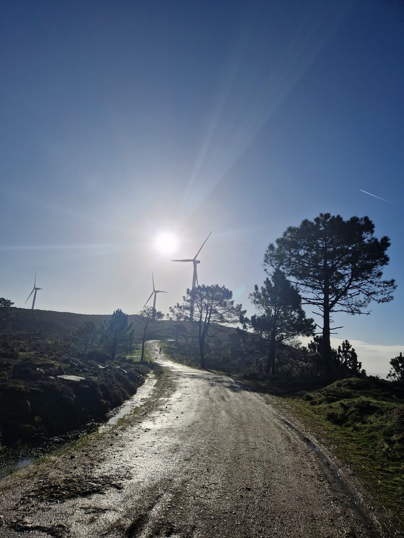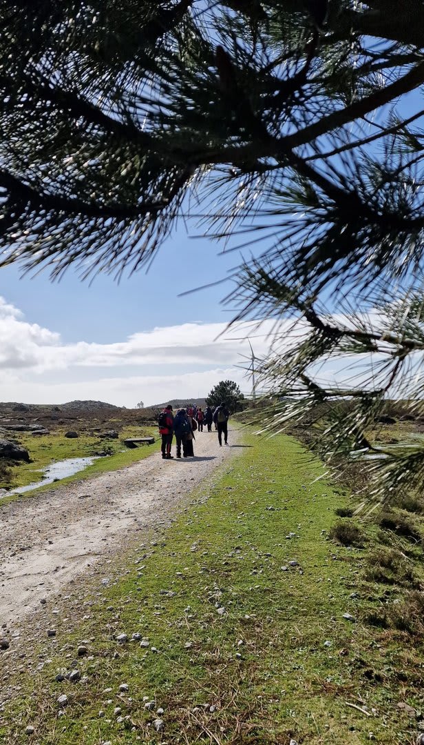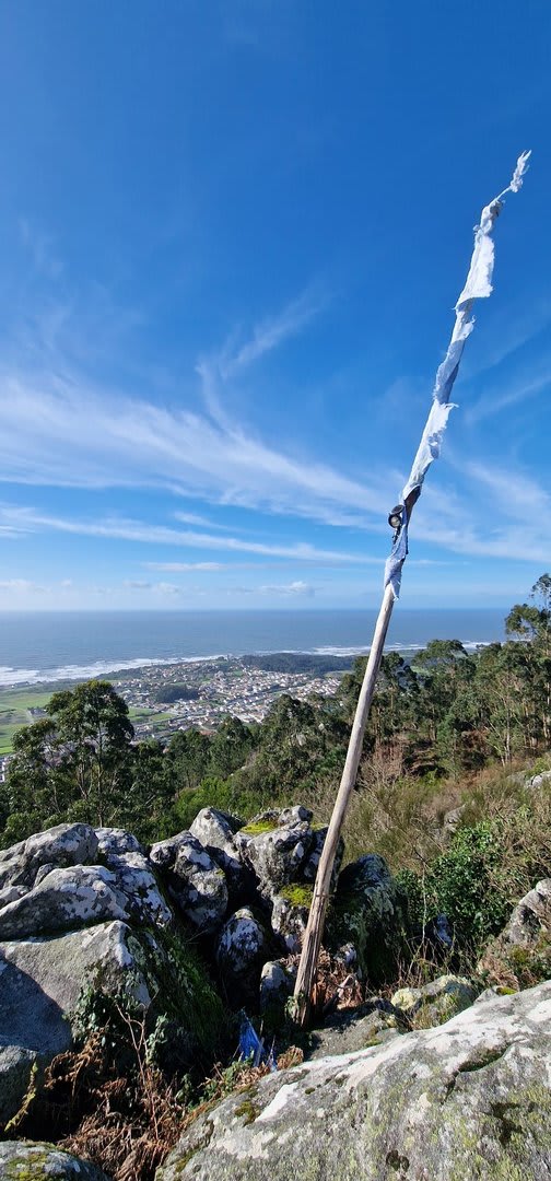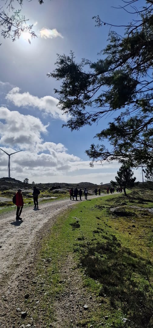 Mas havia que continuar e novamente voltámos ao trilho passando por diversas torres eólicas até chegarmos ao Alto do Porqueiro, outro belo miradouro de 360º sobre a cidade de Viana e o oceano. Depois foi a descida até ao cruzamento da Pereirada, continuando descendo através de uma floresta até chegarmos ao local do "Miradouro do Alto do Mior" ou "Miradouro das Bandeiras", com a espetacular vista sobre a orla marítima e o oceano Atlântico.