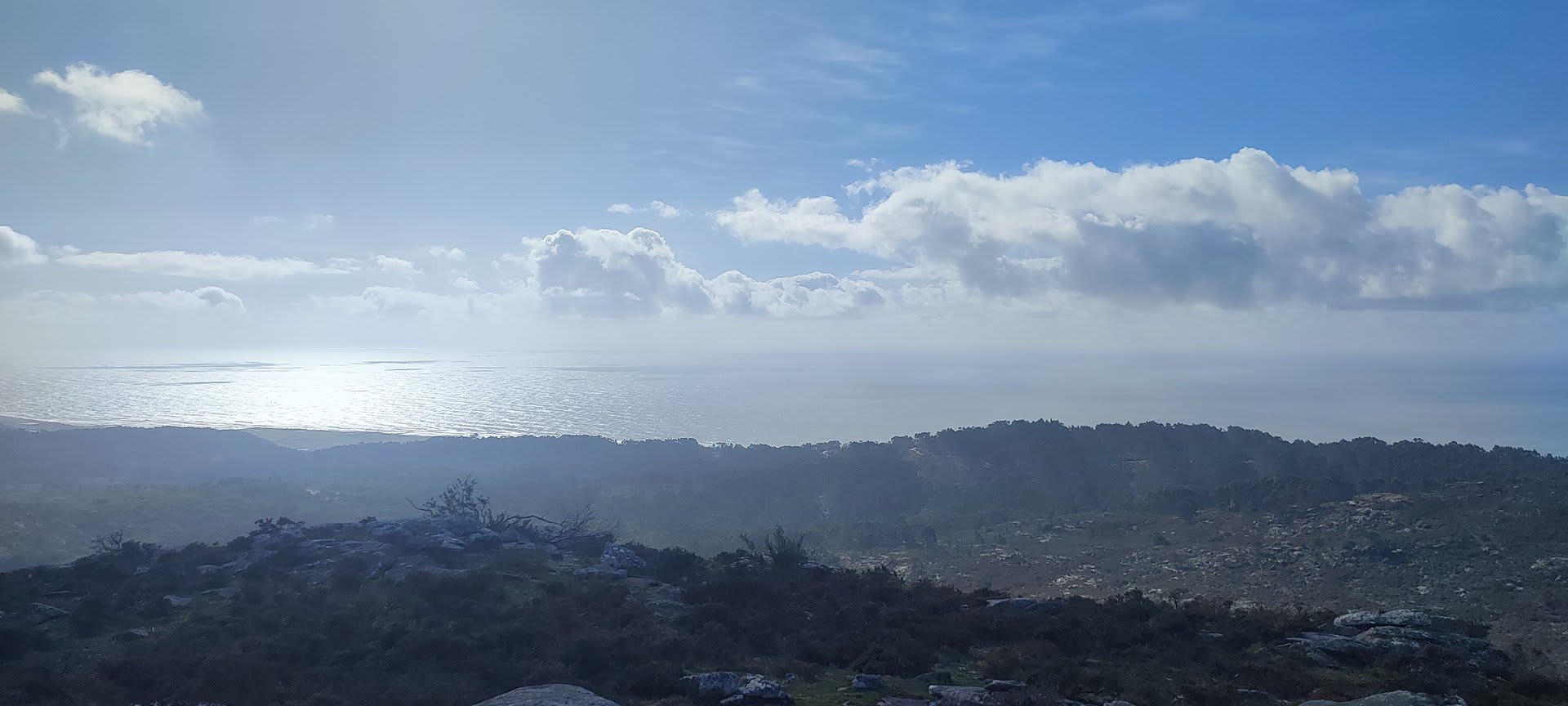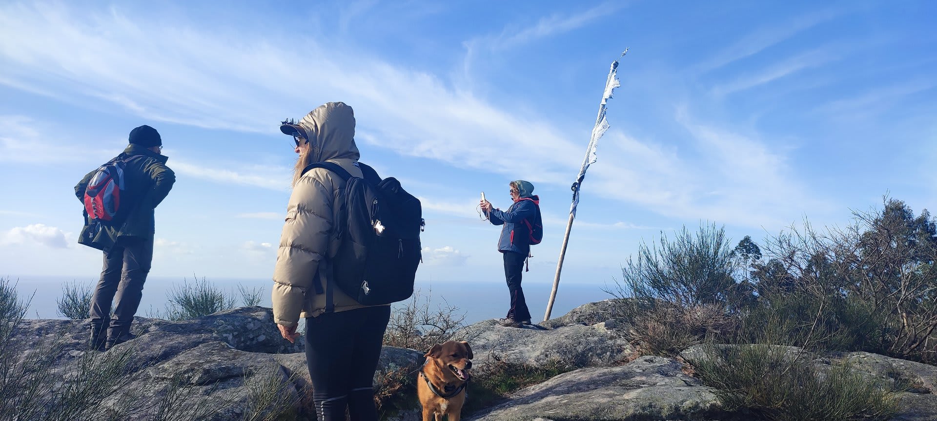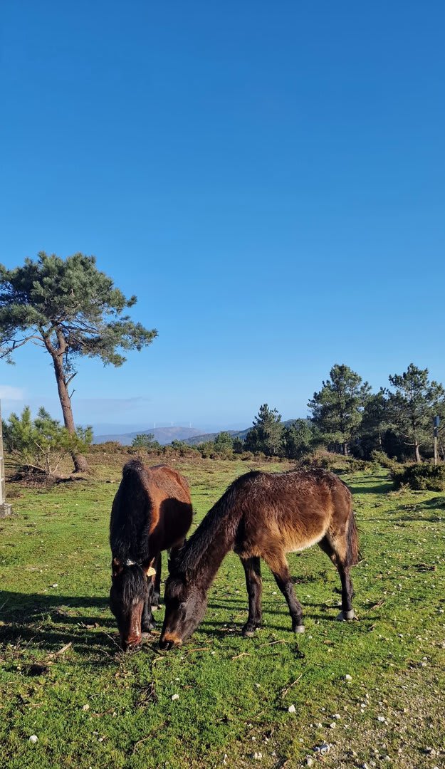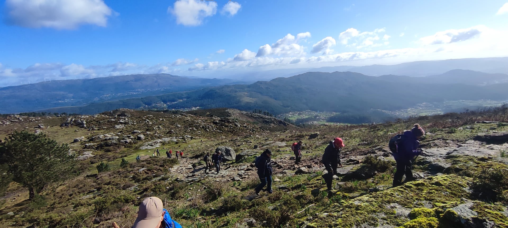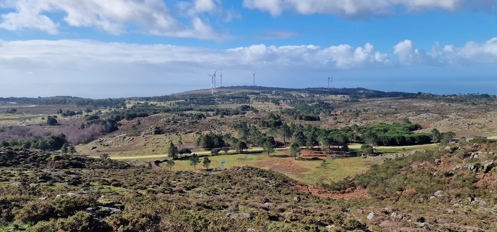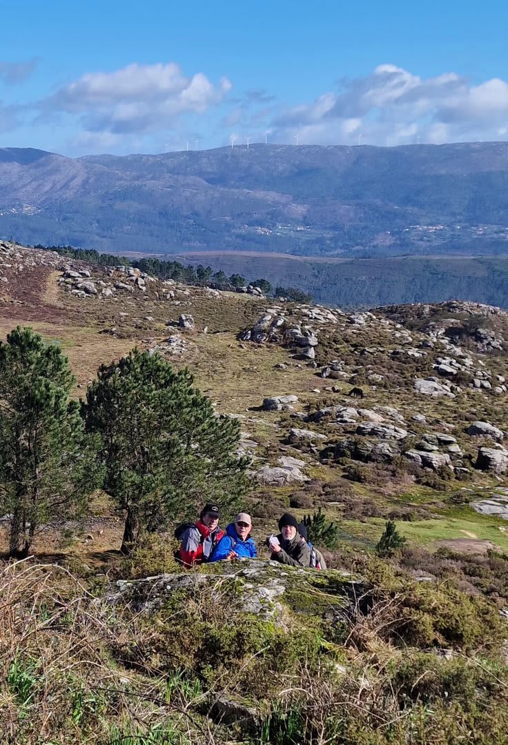 Mas havia que continuar e novamente voltámos ao trilho passando por diversas torres eólicas até chegarmos ao Alto do Porqueiro, outro belo miradouro de 360º sobre a cidade de Viana e o oceano. Depois foi a descida até ao cruzamento da Pereirada, continuando descendo através de uma floresta até chegarmos ao local do "Miradouro do Alto do Mior" ou "Miradouro das Bandeiras", com a espetacular vista sobre a orla marítima e o oceano Atlântico.